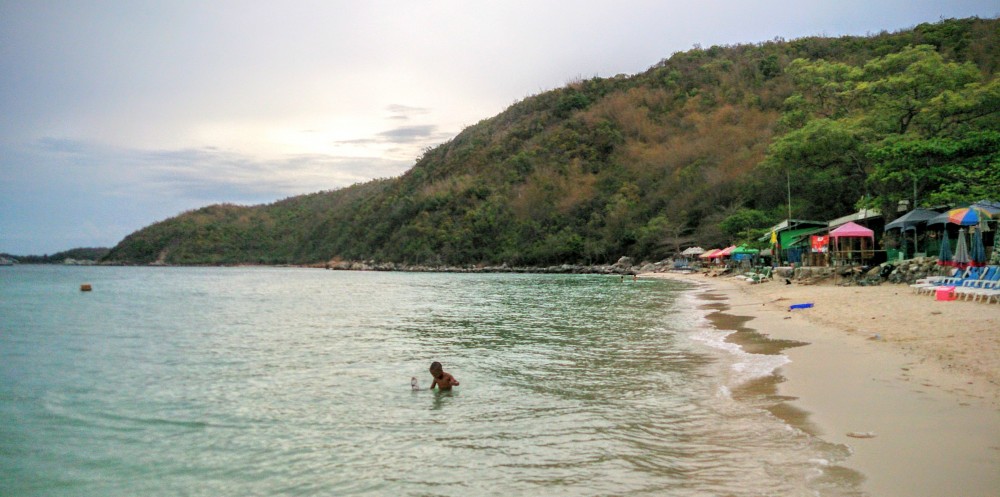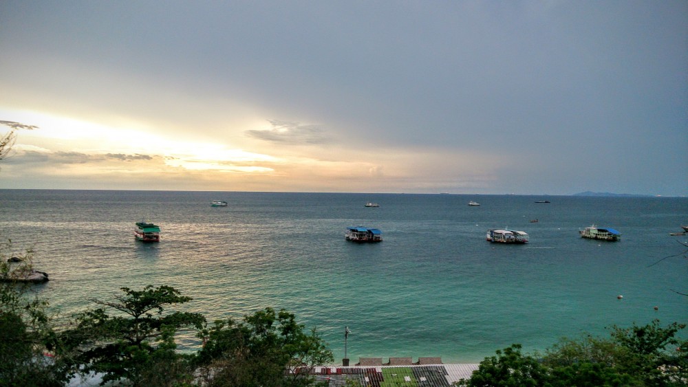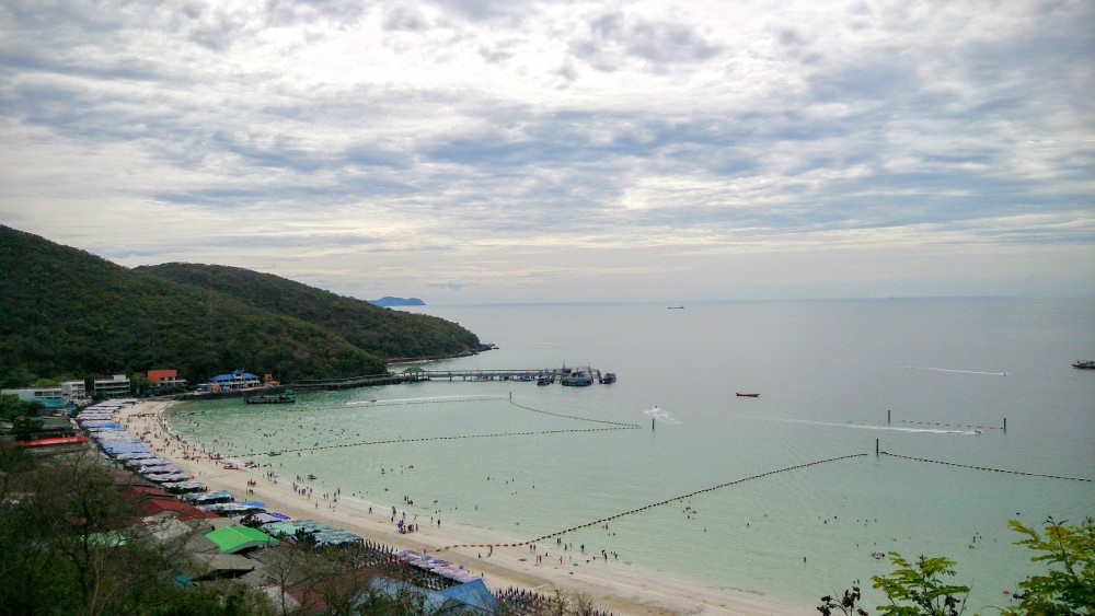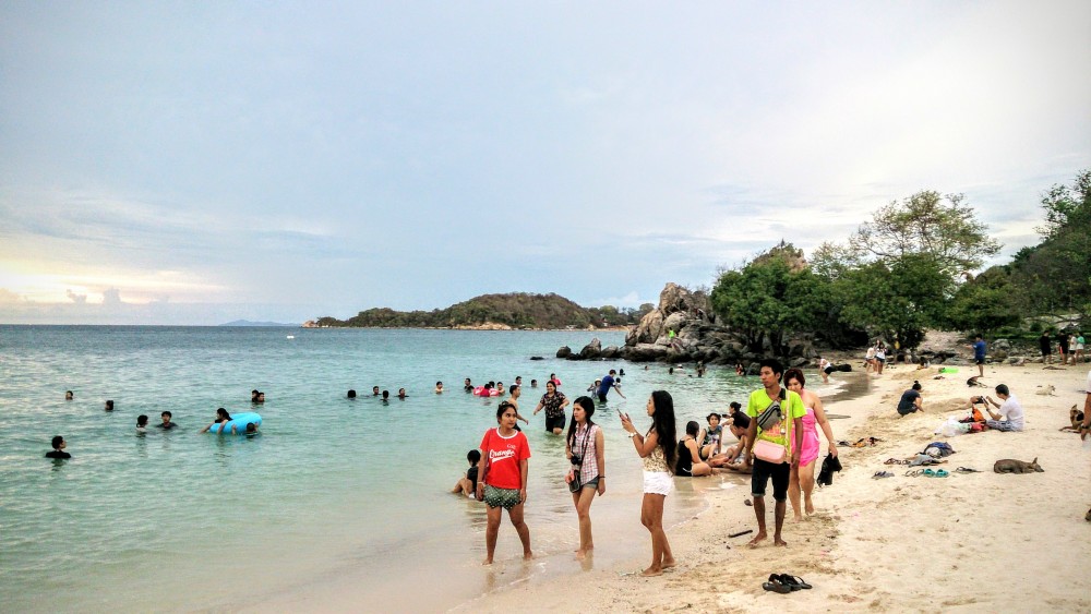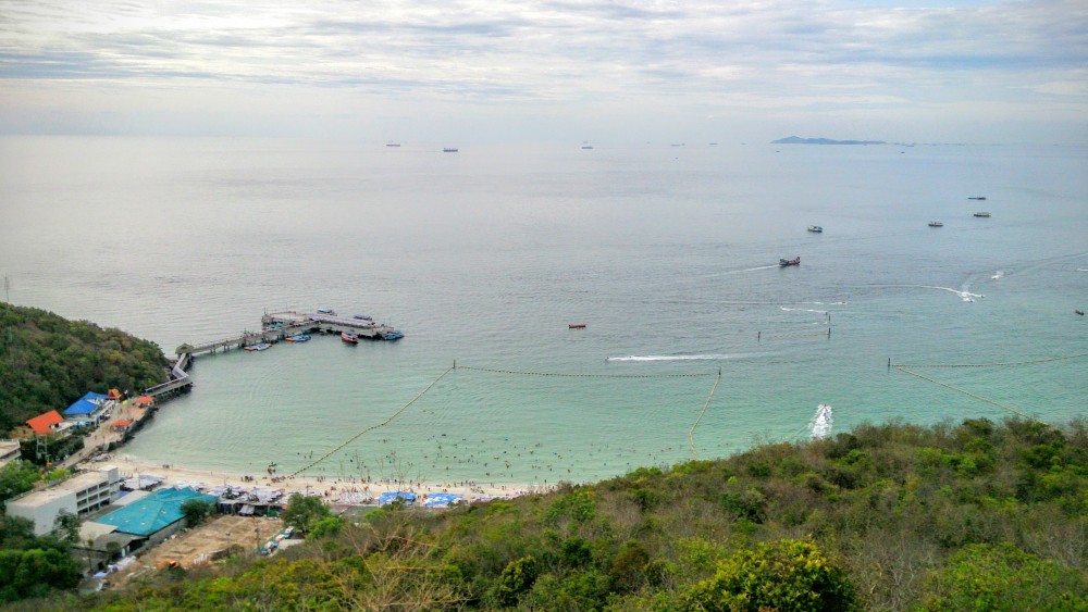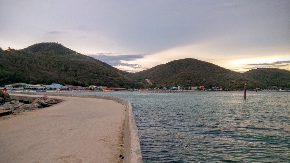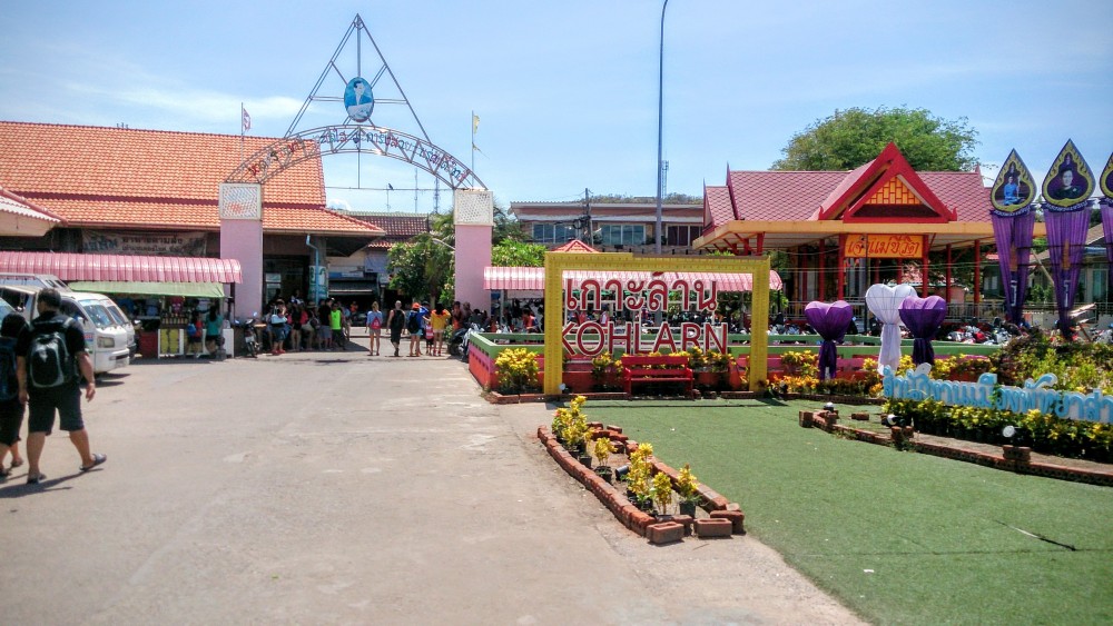 เรือที่ขึ้นพามาส่งที่ท่าเรือหน้าบ้านเกาะล้าน ณ ที่นี้เราจะพบกับคนมาเสนอให้เราเช่ารถมอเตอร์ไซค์ในราคา 300 ต่อวันสำหรับใครที่จะไม่พักค้างคืนบนเกาะล้าน แต่ถ้าเราเดินสำรวจแถวๆนั้นอาจต่อรองราคาได้ 200 บาท (แนะนำให้ซื้อน้ำ ขนม ในร้าน 7-11 นี้เลยจะถูกกว่าแถวหาด)