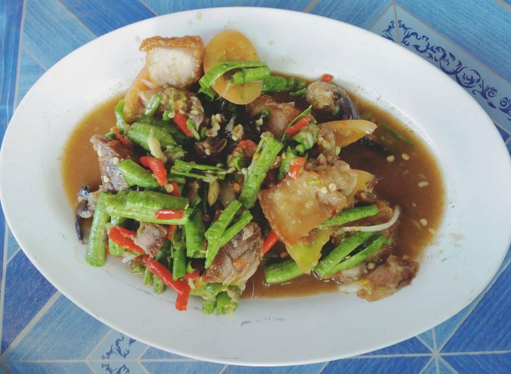 กับ ตำถั่วปูปลาร้าหมูกรอบ แซ่บมาก