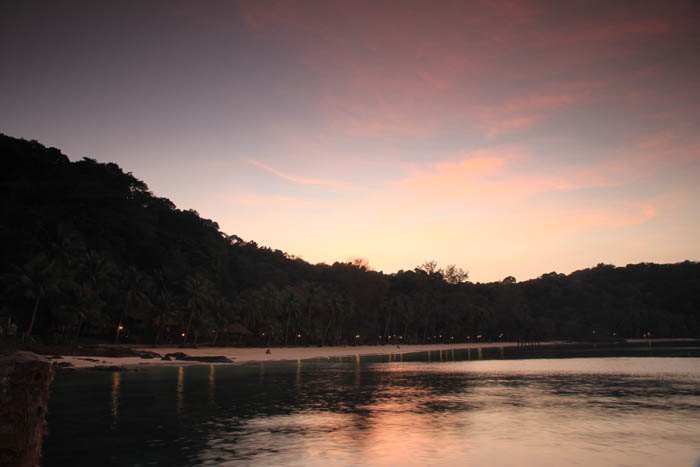 อาหารมื้อแรกของเราในคืนนี้ไม่พ้นปูและกุ้ง แต่ทีเด็ดอยู่ที่ผัดเนื้อมะพร้าวใส่กุ้ง รสชาติหวานลิ้นติดปากดีทีเดียว     ฟ้ามืดลงแล้ว มองดูบรรยากาศรอบตัว นักท่องเที่ยวนี่ส่วนใหญ่ก็เป็นชาวต่างชาติ นั่งทานอาหาร จิบเบียร์ เคล้ากันไป เพลิดเพลินตามอัธยาศัย ส่วนเราก็หาที่นั่งคุยเล่นตามประสา....สองเท้าเดินมาสุดปลายสะพานเทียบเรือ มีเพียงดวงไฟเล็กๆกับความเงียบของค่ำคืน เป็นเกาะที่เงียบสงบดีจริงๆ เพราะรีสอร์ทอื่นๆ เค้ามีไฟใช้กันแค่ สี่ห้าทุ่มเท่านั้น  แทบไม่ได้ยินเสียงอื่นใด นอกจากเสียงน้ำไหวๆใต้ไม้กระดานที่นั่งอยู่ แอบกดปุ่มเซฟบรรยากาศเก็บไว้ในห้วงทรงจำ เผื่อวันข้างหน้าได้พลิกย้อนมาระลึกถึง…