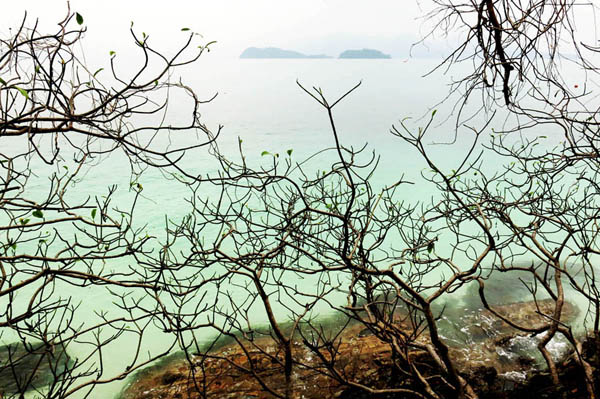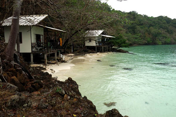 เสียงน้ำตกกระทบหลังคาดังรัวเป็นระรอก เป็นเช้าอีกวันนึงที่อดเชยชมพระอาทิตย์แหวกทักทายขึ้นกลาทะเลแต่ถึงแม้ว่าอากาศจะผันแปรอย่างไร  ฝนจะเทแค่ไหนก็ไม่ทำให้ความสุขในการอยู่ที่นี่ลดลงเลย  กลับได้บรรยากาศไปอีกแบบ...ฟ้าสีหม่นเทาคลุมทั่วทั้งเกาะ  เมื่อคล้อยฝนความเบิกบานก็เข้ามาแทนที่ความเอื่อยเฉื่อย สะพายกล้องออกท่องเกาะกันอีกครั้ง มาตามแนวป่าสลับโขดหิน ชมท้องน้ำฟ้าใสมาเรื่อยๆ  จะเป็นแนวที่พักของกู๊ดฟิลลิ่ง คือมันกู๊ดฟิลลิ่งจริงๆด้วย ที่พักราคาหลักร้อย แถมได้วิวทะเลส่วนตัวอีกต่างหากมันจะไม่กู๊ดได้ไงจริงมั้ย...