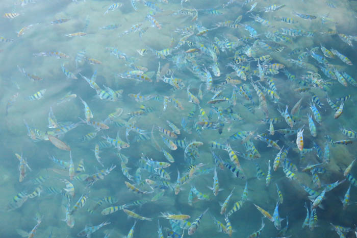 บริเวณสะพานเทียบเรือหน้าหาดช่วงสายจนถึงบ่ายจะมีเรือจากทัวร์ดำน้ำท่องเที่ยวทยอยมากันไม่ขาดสาด เป็นที่ครึกครื้นมากๆ  ซึ่งหาดที่นี้โดดเด่นในความสวยงามของปะการัง เป็นจุดที่ผู้คนลงดำน้ำชมความงามจำนวนมาก    ทำให้สีสันบนพื้นน้ำดูสดใสไปด้วยสีส้มที่ลอยตุ๊บป่องอยู่กลางทะเล  หงายฝามือดูนิ้วเหี่ยวๆ ถึงรู้ว่าเราอยู่ในน้ำจนลืมเวลา  พอขึ้นจากน้ำปั๊บก็แสวงหาอาหารกันอิ่มเปรม   ตกเย็นเดินตามชายขอบของเกาะอีกทางนึง ผ่านดงต้นไม้ใบหญ้าที่จับตัวด้วยต้นมอสเขียวอี๋สีสด  จะพบ “กระท่อมยายมา”  ที่พักอีกแห่งของเกาะ  ลักษณะเป็นบ้านบังกะโลดิบๆ แทรกตัวอยู่ในเงาของต้นมะพร้าวสูงชะลูด..เห็นแล้วน่ามาเอนกายอยู่ไม่น้อย ด้วยราคาเป็นมิตร เหมาะมากสำหรับผู้รักความเป็นส่วนตัวขั้นสุด!