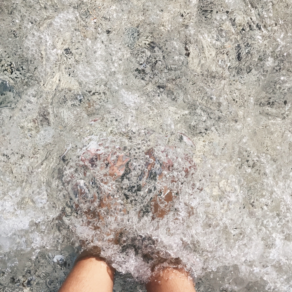 ลงไปเล่นน้ำนิดหน่อยให้พอได้มาทะเล เอาเท้าจุ่มน้ำงี้ นี่พยายามทำตัวชิวๆช้าๆ แต่รู้สึกว่าใจนี่รีบทำนั่นนี่มาก