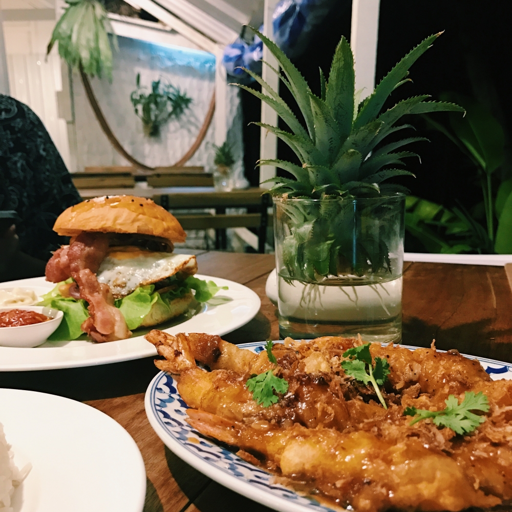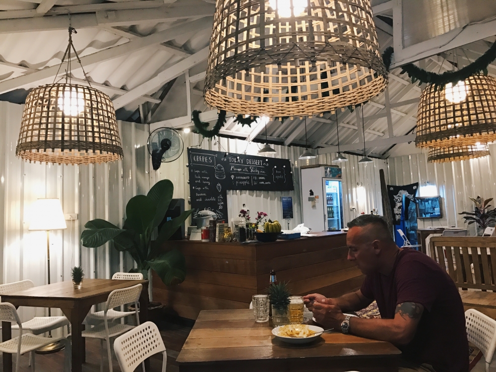 จำร้านได้คร่าวๆ เป็นร้านอาหารแถวถนนทางหาดทรายรีประมาณนี้ ความรีบเพราะจะต้องไปเกาะนางยวน