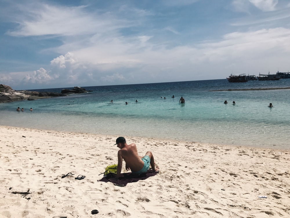 เรารีบทำเวลาให้ทันบ่ายโมง กลัวไม่มีเรือ แต่ผิดคาดเราไปหา Taxi boatแถวหาดทรายรีได้เลย มีป้ายบอกมีลุงนั่งเฝ้า1คน ตามคำแนะนำจากเจ้าของร้านกินข้าวบวกกับเสิชดูราคาเล็กน้อยเผื่อไปต่อได้ ฮ่าๆๆ