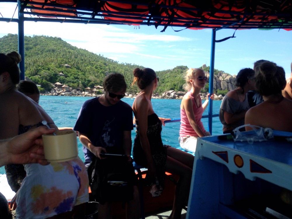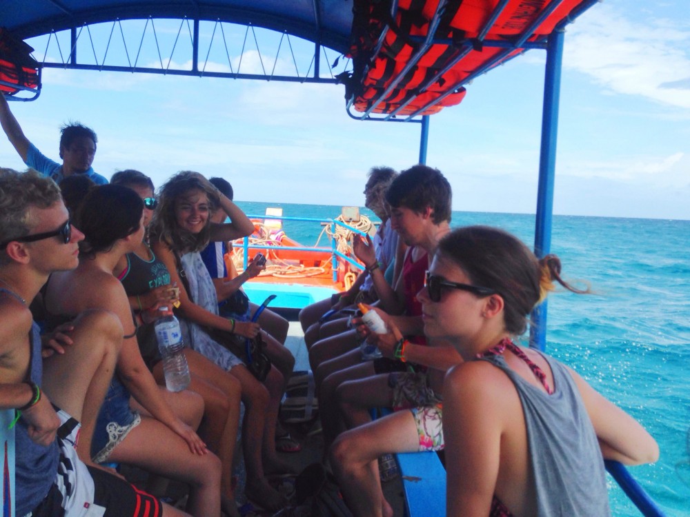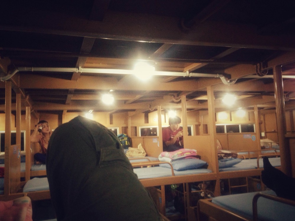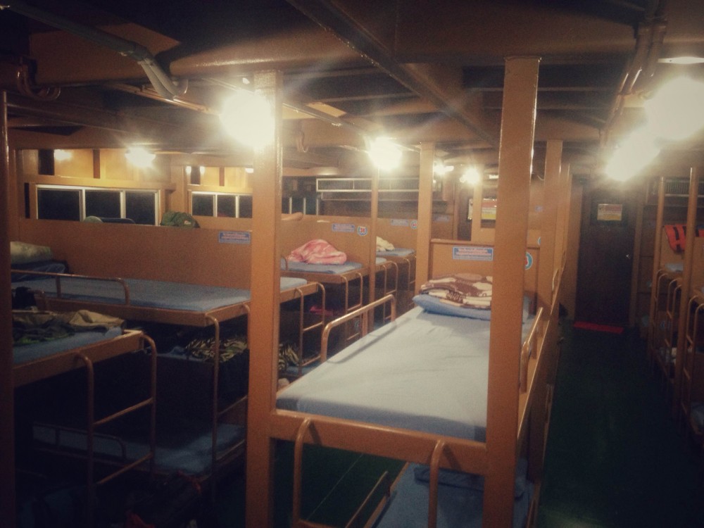 พวกที่นอนอยู่ในห้องมีประมาณ 7-8 คน ก็ทำหน้าเหว๋อๆ เราก็เหว๋อ แต่ไม่ได้คิดไร ซักพักหันมาถามผม มาทำไร มากับใคร ถึงแล้วทำไมไม่ลง มายืนล้อมเตียงกันหมด เราก็เลยเก็บของแล้วลงจากเรือเลยดีกว่า