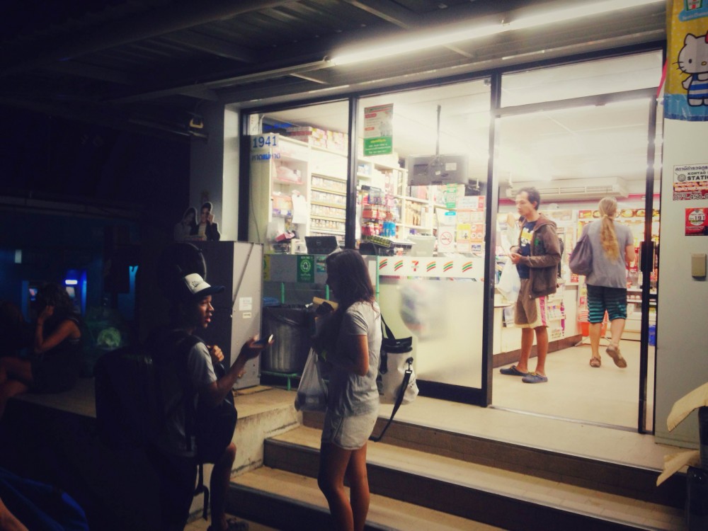 เลยใช้ทักษะที่มีโยกหลอกว่าจะไปซ้ายแล้วพุ่งตัวเข้าเซเว่นที่อยู่ทางขวาทันที มันก็พูดอะไรลับหลังผมซักอย่าง (เหมือนคนเมายา) ดีที่มันไม่ตามเข้ามาในเซเว่น โชคดีไป ซักพักมันก็เดินหายไป ถึงกับใจเสียไปนิดนึง แต่ไม่เป็นไร ฝรั่งดีๆ ก็มีเยอะ ไม่ทำให้ทริปนี้เฟลแน่นอน