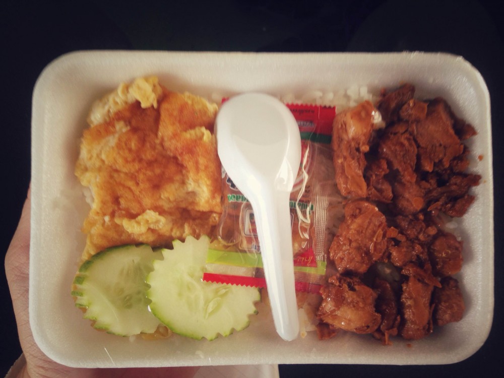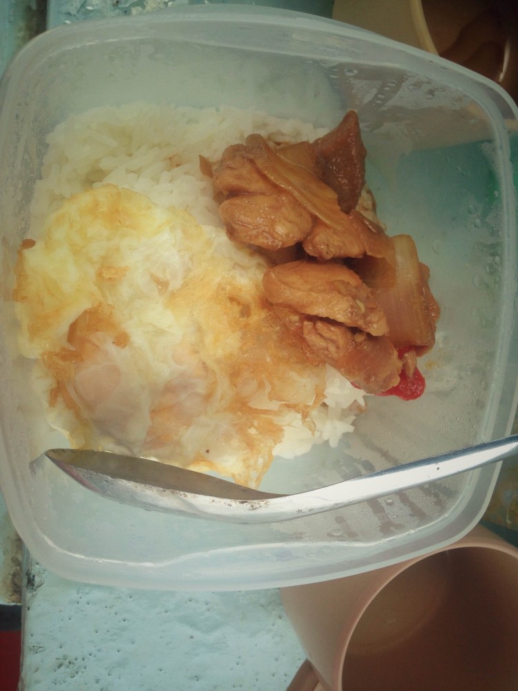 เดินกลับมาจะถึงที่พักประมาณ 8 โมง กะหาร้านข้าวข้างทางธรรมดานั่งกินก่อน เจอร้านข้าวแกงใกล้ๆ ที่พัก