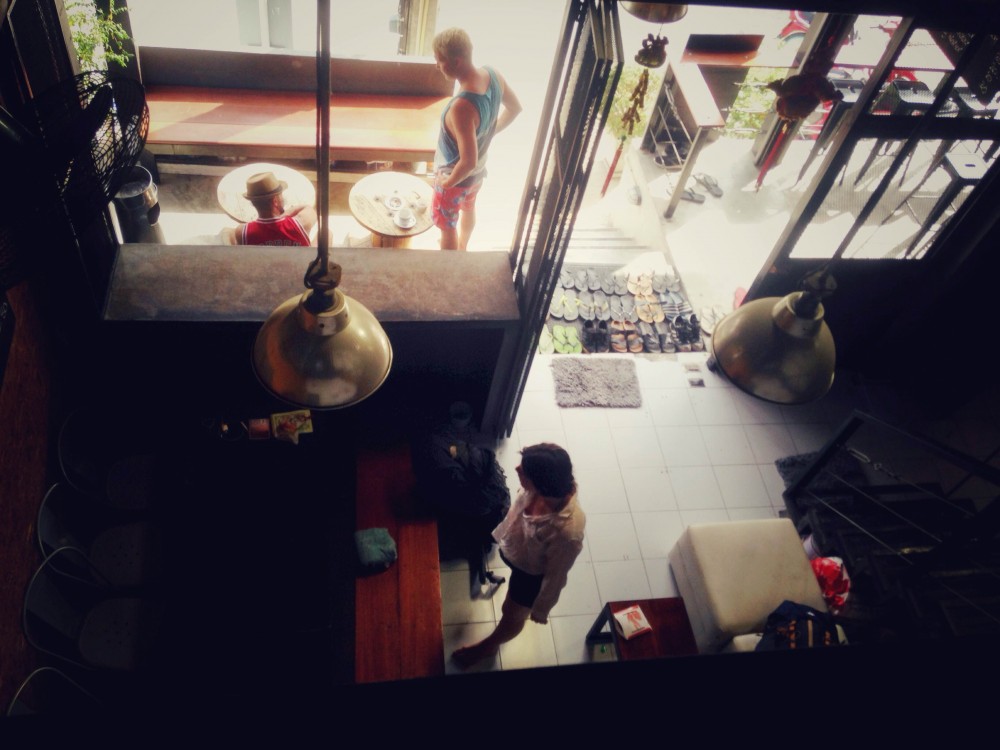 เดินกลับมาที่พัก ตั้งใจว่าจะอาบน้ำแล้วไปหาของกินที่หาดทรายรี พร้อมดูแสงสียามค่ำคืนซักหน่อย ดั้นนนนนนนน ลืมกุญแจห้องไว้ที่เตียง! ไม่รู้จะทำยังไง เผอิญเห็นต่างชาติ 2 คน เดินผ่านมา จำได้ว่านอนเตียงข้างๆ เลยรีบพุ่งตัวเข้าไปขอความช่วยเหลือ