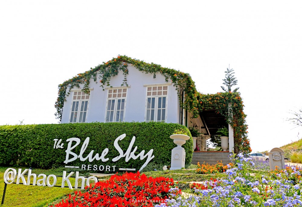 มาเขาค้อ ทริปนี้ เราขอเลือกพักรีสอร์ท ที่มีบรรยากาศดีๆ อยู่ทามกลางภูเขา อย่าง The Blue Sky Resort @ Khao Kho ซึ่งได้ชื่อว่าเป็นอีกหนึ่งรีสอร์ทที่ไม่ควรพลาด ก่อนหน้านี้เราเคยไปพักที่ เกาะพยามและระนองแล้ว รู้สึกชอบมาก รู้สึกประทับใจ เลยกะว่าจะพักให้ครบทุกที่ของ The Blue Sky Resort และครั้งนี้ก็เช่นกัน เป็นรีสอร์ท ที่มีการตกแต่งสวยงามด้วยดอกไม้นานาชนิด ดูแล้วสดชื่น สมกับที่เขาพูดกันว่า พักเขาค้อ 1คืน อายุยืน  1ปี ไม่ว่าจะเดินไปมุมไหนๆ ก็ดูสดชื่นไปหมด ถ้าใครที่ชอบถ่ายรูปไม่ควรพลาดเพราะที่นี่มุมถ่ายรูปเยอะมาก เดินชมภายนอกรีสอร์ทกันแล้ว เราลองเขาไปดูห้องกันบ้างดีกว่า ห้องพักที่เราจองนั้น คือ Family Room จะมี 2 ชั้น ชั้นแรกจะเป็นเตียงเดียว ส่วนบันไดที่เราเห็นนั้นเป็นทางเดินขึ้นไปยังชั้นลอย หรือ ชั้นใต้หลังคานั้นเอง ชั้นบนจะมีที่นอนอยู่ 2 ที่ ส่วนด้านนอกเป็นระเบียง สามารถนั่งเล่นชมบรรยากาศ ดูวิวสวนสวยๆของทางรีสอร์ทกันได้แบบสบายตา จากระเบียงห้องมองออกไปทางด้านข้างก็เจอมุมห้องอาหารของรีสอร์ท เดินเล่นชมรีสอร์ท เก็บของพักผ่อนกันพอสมควร เราออกไปข้างนอกกันดีกว่า ซึ่งสถานที่ท่องเที่ยวใกล้ๆ รีสอร์ท มีมากมายหลายที่ และที่แรกที่เราจะไปก็คือ เดอะ หลุยส์ คอฟฟี เป็นร้านกาแฟที่วิวภูเขามองเห็นวิวได้แบบ 360 องศา ภายในร้านตกแต่งด้วยตุ๊กตาหมีมากมาย จาก เดอะ หลุยส์ คอฟฟี่ ขับรถออกไปไม่ไกลมากนักจะเห็นป้ายร้านขนมจีน ตลอดทาง มาถึงที่ขนาดนี้เราก็ต้องแวะหน่อยละกัน เนื่องจากที่นี่เรื่องขนมจีน ไม่เป็นลองใคร นี่เลย ขนมจีนหล่มเก่าร้านคุณยายน้อย ขนมจีนอร่อยมาก เพราะขนมจีนที่นี่ทำสดใหม่ทุกวัน และที่สำคัญหาไม่อยาก เพราะร้านอยู่ด้ายหลัง วัดพระธาตุผาซ่อนแก้วเลย เราสามารถจอดรถที่ร้านแล้วเดินไปที่วัดได้เลยค่ะเมื่ออิ่มท้องด้วยขนมจีนกันเรียบร้อย เราก็จอดรถไว้ที่ร้านแล้วก็เดินไปยังวัดพระธาตุผาซ่อนแก้ว กันค่ะ ซึ่งวัดกับร้านอยู่ไม่ไกลกัน เราสามารถเดินไปได้เลย วัดพระธาตุผาซ่อนแก้ว เป็นสถานที่ที่มีความงดงามตั้งอยู่บนทามกลางขุนเขามีเจดีย์ที่ตกแต่งอย่างสวยงามด้วยกระเบื้องหลากหลายสี เครื่องประดับ พลอย สร้อย กำไล ถ้วยชามเครื่องเบญจรงค์ เป็นต้น มีความกลมกลืนกับธรรมชาติ ด้วยยึดหลักที่ว่า หากได้อยู่ในสถานที่สงบสวยงาม จิดใจก็จะสงบได้โดยง่ายวันนี้เราก็เดินทางกันมาทั้งวันแล้ว เรากลับที่พักไปพักผ่อนเก็บแรงไว้เที่ยวต่อวันพรุ้งนี้ดีกว่า บอกเลยว่าบรรยากาศยามเย็นที่รีสอร์ท อากาศดีมาก ไม่ร้อนเลย มีลมพัดตลอดเวลา อากาศกำลังดีเลยค่ะ