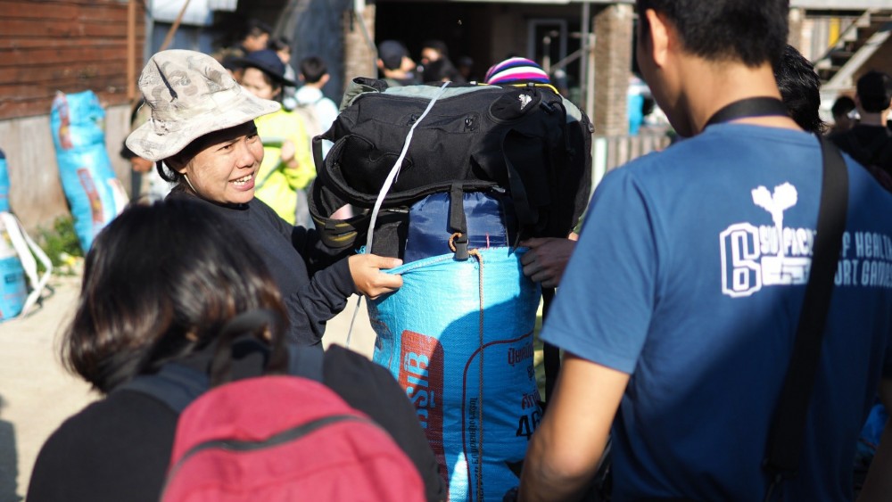 เมื่อกินเสร็จก็ไปยืนยันตัวกับเจ้าหน้าที่นำทาง จากนั้นก็จ้างลูกหาบ