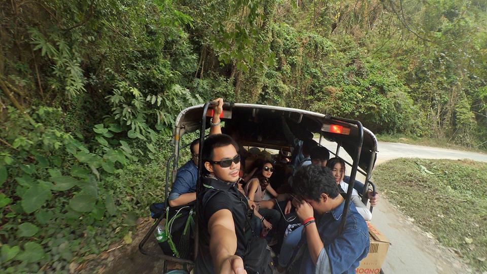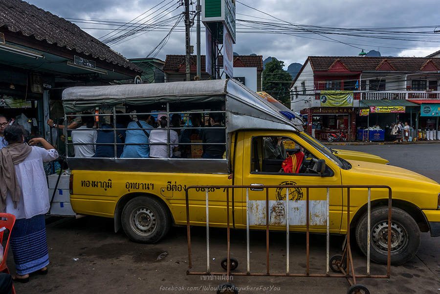 สำหรับผมถึงจะทันรถรอบแรกแต่ก็ไม่มีที่นั่งพอครับ ต้องโหนท้ายรถขึ้นไปแบบนี้