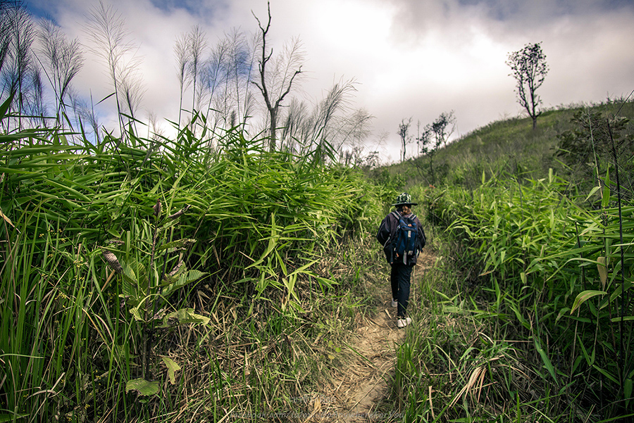 เดินไปเรื่อยๆ ข้างๆทางเริ่มเปิดโล่งขึ้นครับ ระดับหญ้าค่อนข้างไม่สูงเท่าไร แดดก็เริ่มร้อนขึ้นตามลำดับ
