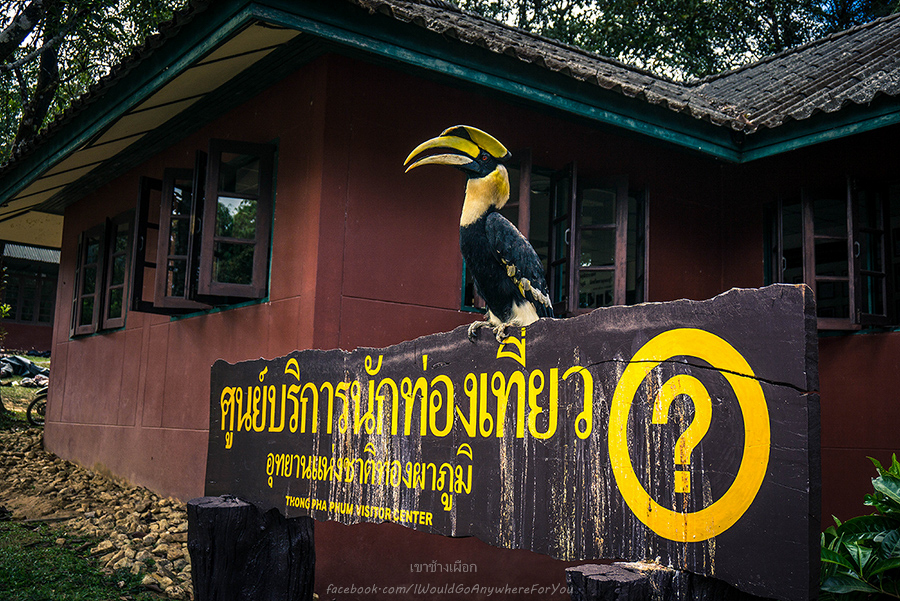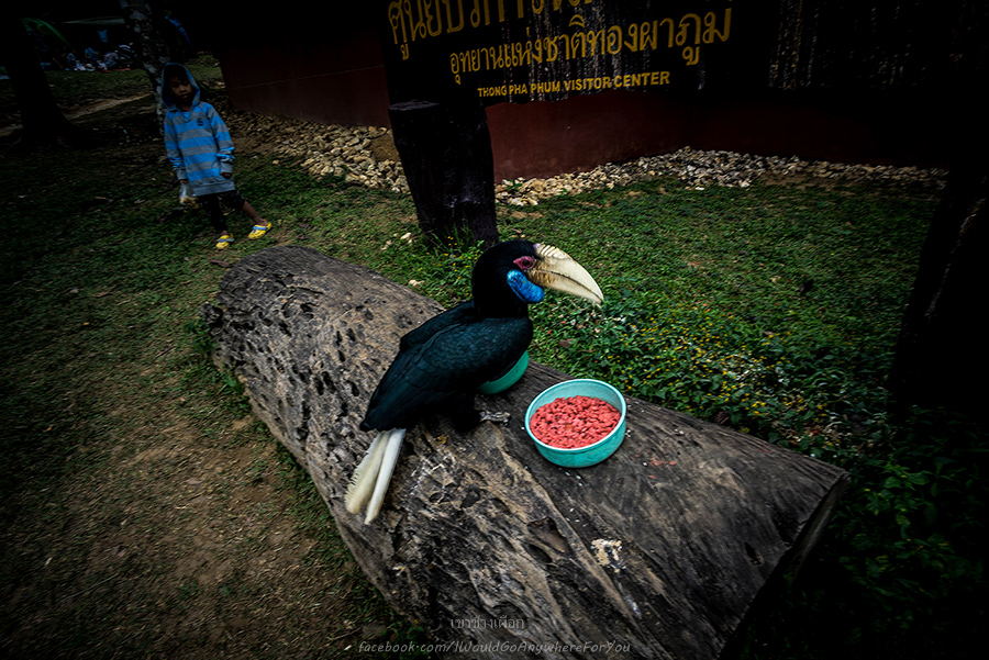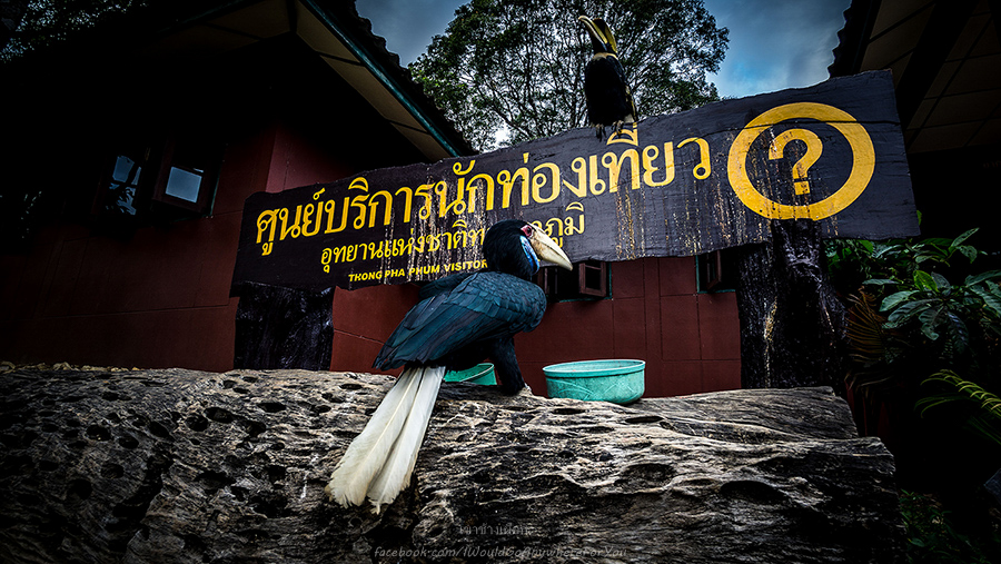 ที่นี่จะมีเจ้านกเงือก 2 ตัวนี้ คอยมารับแขก ไม่ตื่นคนเลย สามารถให้อาหารที่เจ้าหน้าที่จัดไว้กับพวกเขาได้ครับ