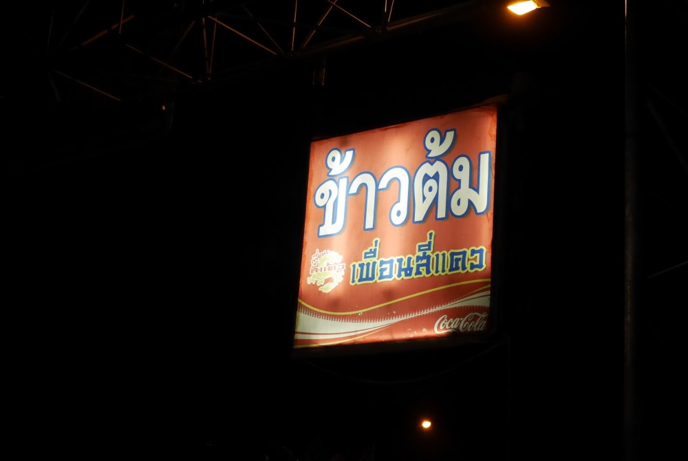 ระหว่างเดินทางเกือบเที่ยงคืนแวะหามื้อเย็นของวันเพราะต่างคนต่างรีบมาเจอที่จุดนัดหมาย สาวเท่ห์บ่นหิวเพราะยังไม่ได้กินมื้อเที่ยงเลยขอรวบ 2 มื้อเป็นมื้อเดียว ณ เวลานี้อะไรจะดีไปกว่าข้าวต้มร้อนๆ