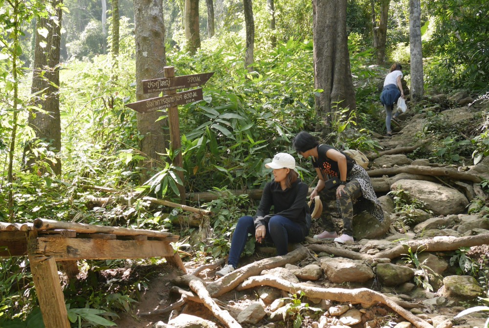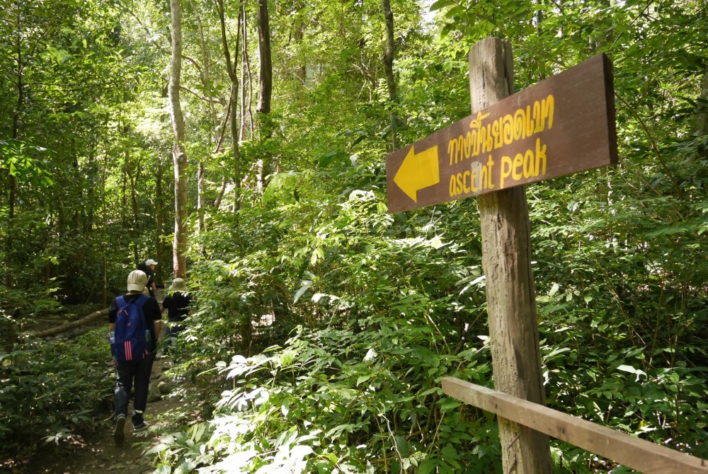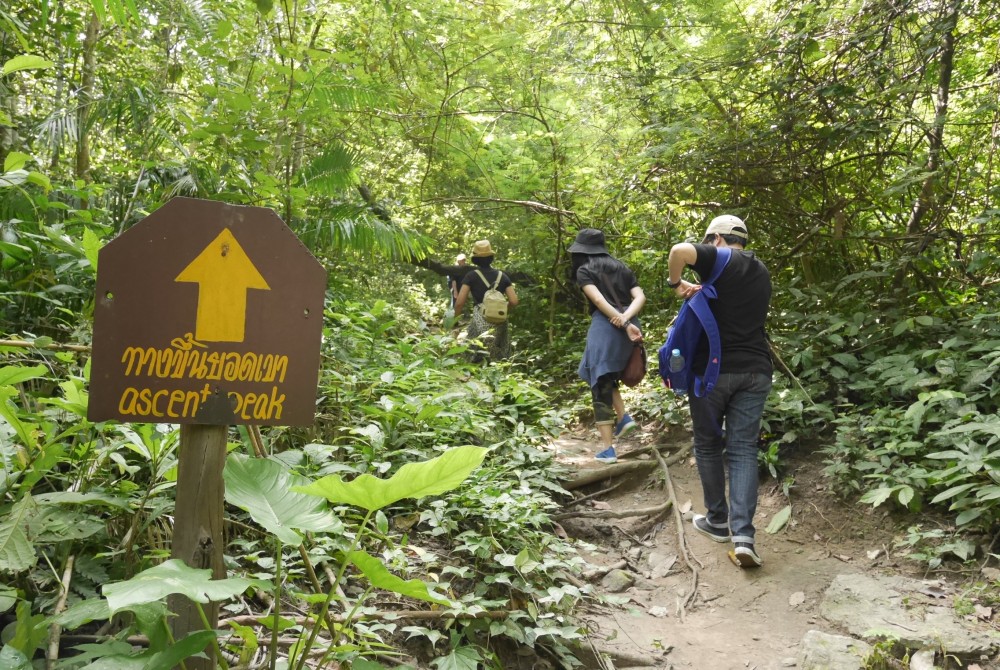 ระหว่างทางเจอนักท่องเที่ยวเดินสวนมา มีจังหวะทักทายตามประสาคนมีมนุษยสัมพันธ์ที่ดี สู้ๆ นะค่ะ ไม่ไกลแล้วเดี๋ยวก็เจอทางสบาย ไม่มีทางราบเลย ชันตลอด 555 พูดจบสังเกตสีหน้าผู้เดินสวน มีแอบงอนแถมหน้ามุ่ยนิด ๆ จึงหยอดไปว่า ไม่เท่าไรหรอกน้องขนาดพวกป้าๆ ยังเอาชีวิตรอดเล้ย 555 เจอน้องหมาวิ่งนำหน้าเจ้านายขึ้นเขามาด้วย น่ารักมากมาย