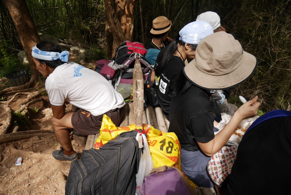 พี่ลูกหาบ หรือจะเรียกลุงลูกหาบดี 555 คิดราคาค่าบริการแบกข้าวของกิโลกรัมละ 25 บาท ชั่งน้ำหนักแล้วแค่ 40 กิโลกรัมเอง รวมของบรรดาพี่ๆ เจ้าหน้าที่ฝากขึ้นไปด้วย สบายบรื้ออออ ลุงบอก แต่ลองไปยกแล้วไม่ว่าจะเอาท่าไหนก็ไม่ขึ้นเลยสักนิด 555
