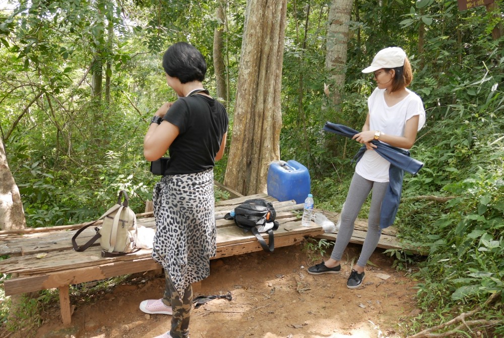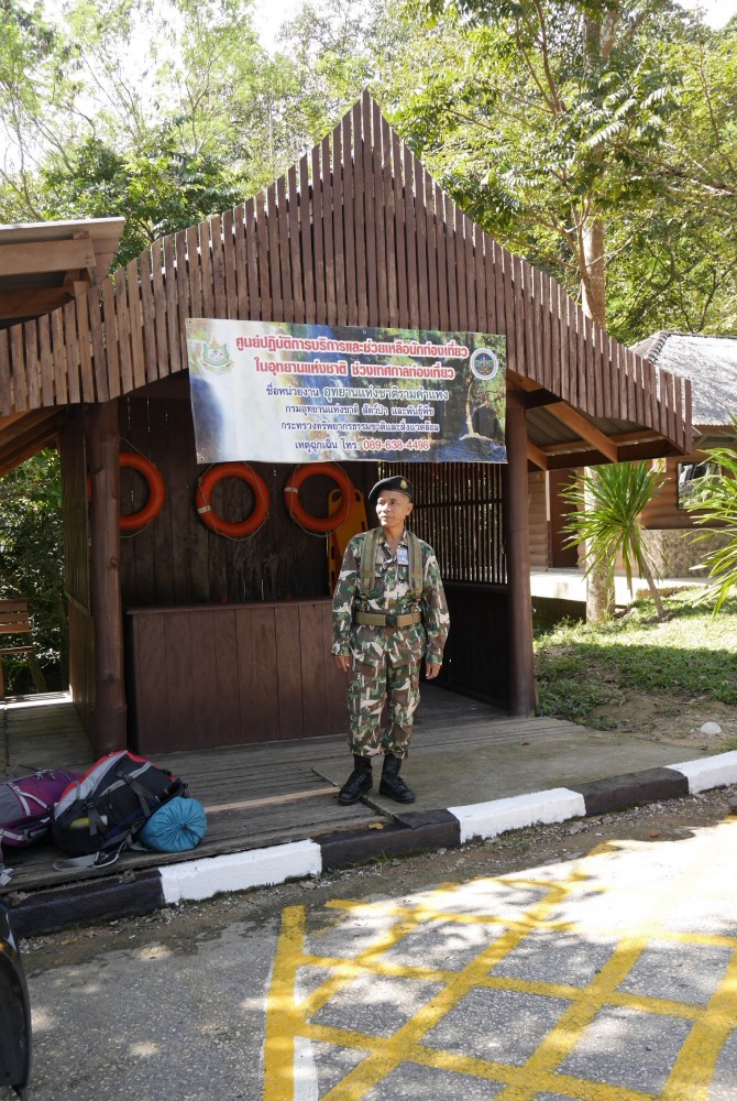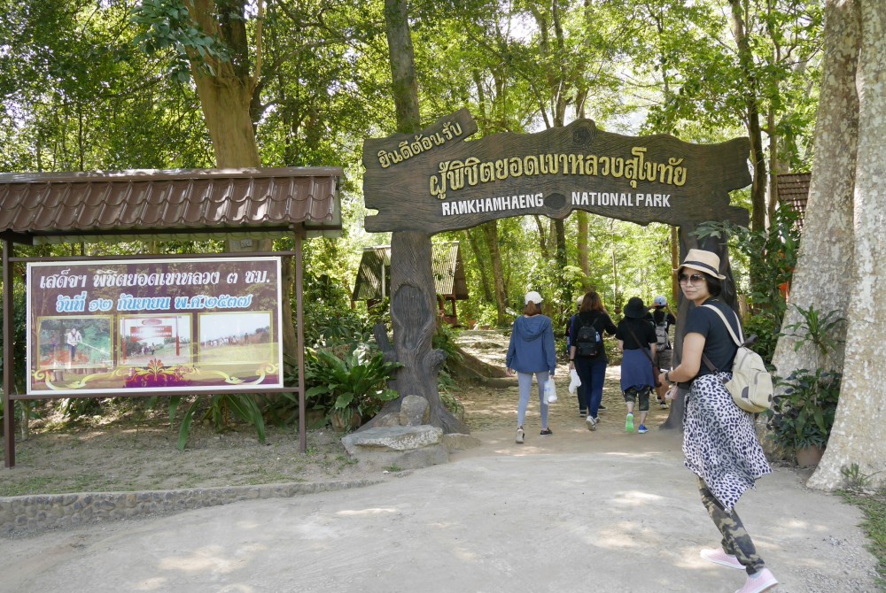 ระหว่างชมบรรยากาศข้างทาง ไม่นานก็ถึงเขตอุทยานแห่งชาติรามคำแหง ติดต่อเจ้าหน้าที่ มีเจ้าหน้าที่คอยมาต้อนรับ จริงๆ แล้ว พี่ๆ เจ้าหน้าที่กำลังเตรียมตัวต้อนรับคณะอธิบดี ผู้หลักผู้ใหญ่ที่มาตรวจราชการต่างหาก พวกเราเลยได้รับอานิสงส์ 555 คิดมโนเองว่ามารอต้อนรับคณะเราเลย 555 ค่าธรรมเนียมเข้าอุทยานคนละ 40 บาท และค่าจอดรถคันละ 30 บาท