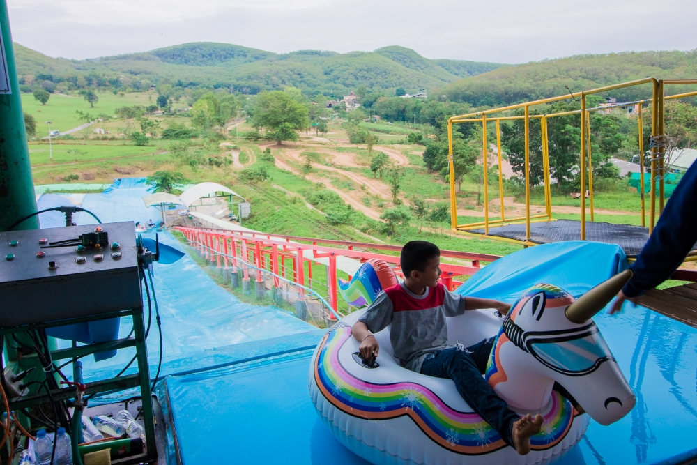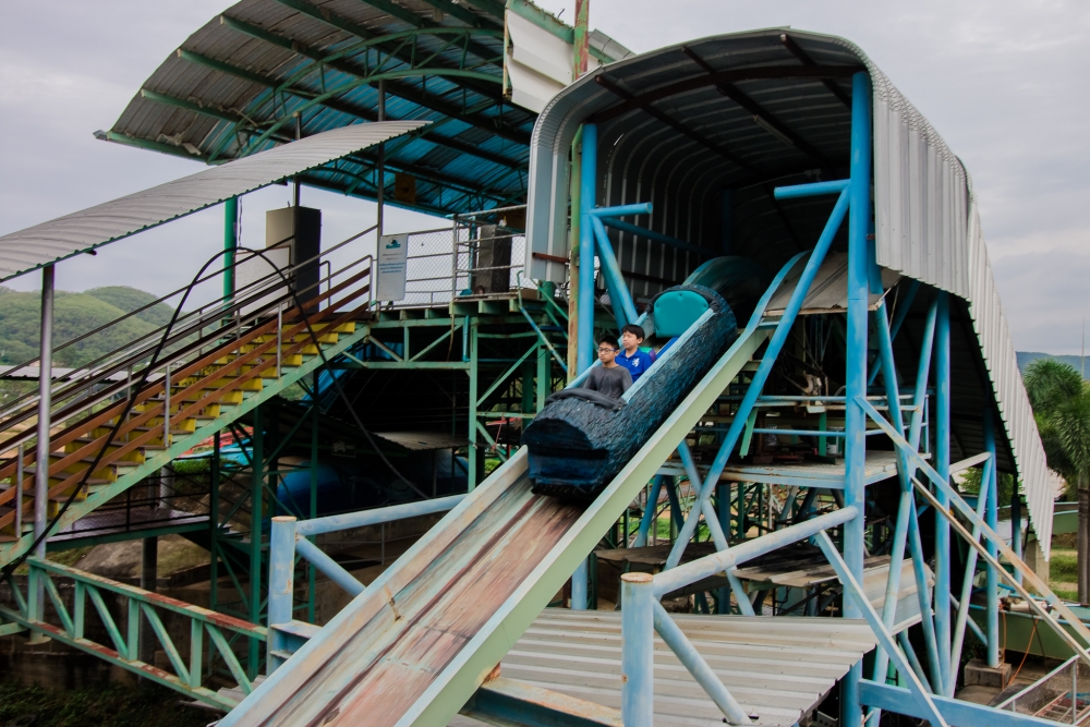 ล่องแก่ง เหมือนจะชิว แต่มีจุดพีค คือไหลลงมาด้วยความเร็ว ตู้มน้ำกระจาย เด็กๆน่าจะชอบ เปียกหน่อยๆนะ ให้เล่นอันนี้ก่อน ชุดจะได้แห้ง 5555