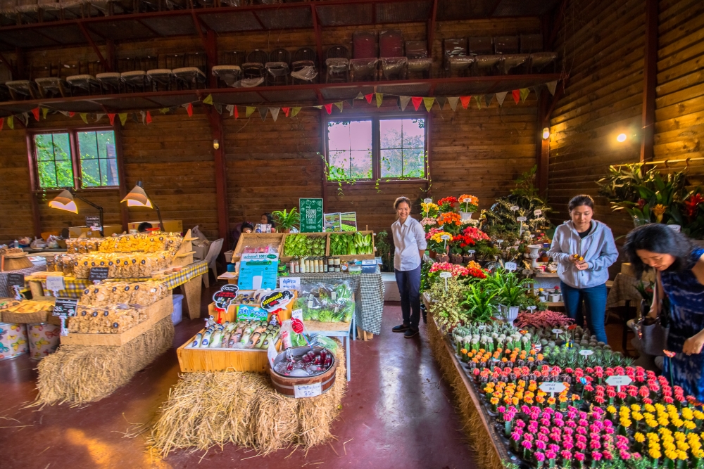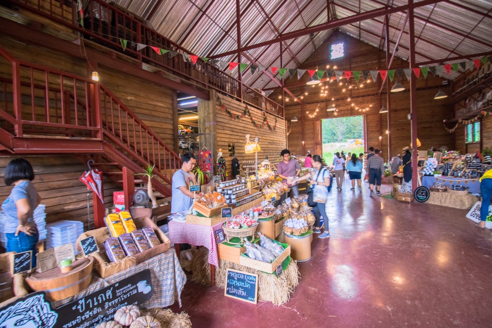 ส่วนด้านในของบ้านเขียวๆ ก็จะเป็นตลาด มีพวกต้นไม้ ดอกไม้ ผลไม้ ข้าวของเครื่องใช้ ขนมนมเนยขาย