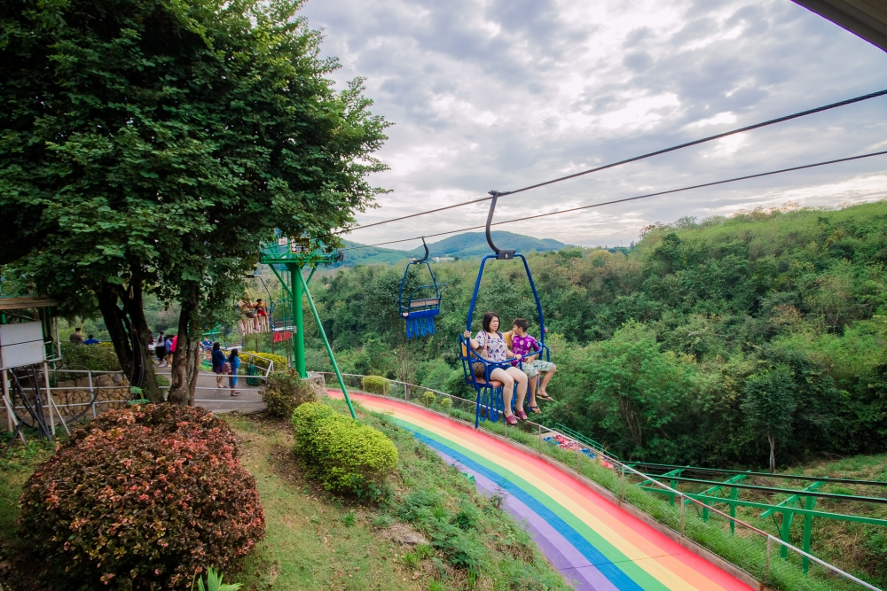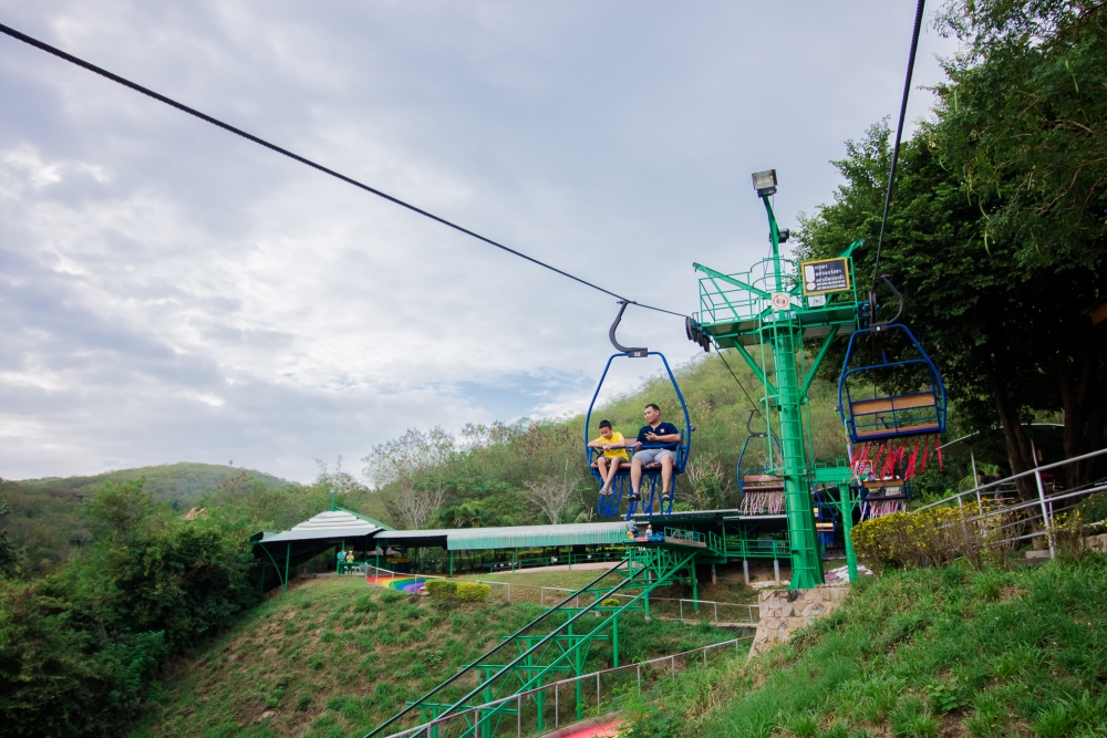 กระเช้าลอยฟ้า เด็กกับผู้สูงอายุเล่นได้ ความสูลพอประมาณ ทีเด็ดคือวิวสองข้างเป็นภูเขา