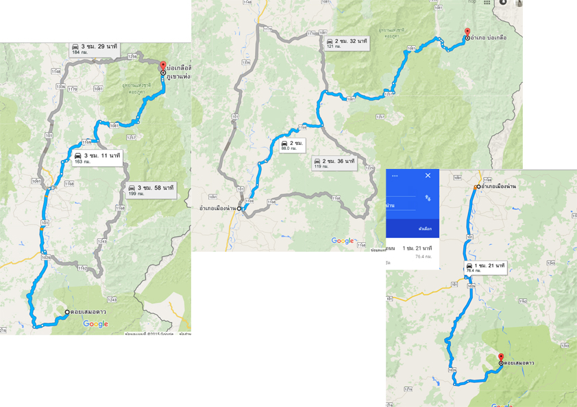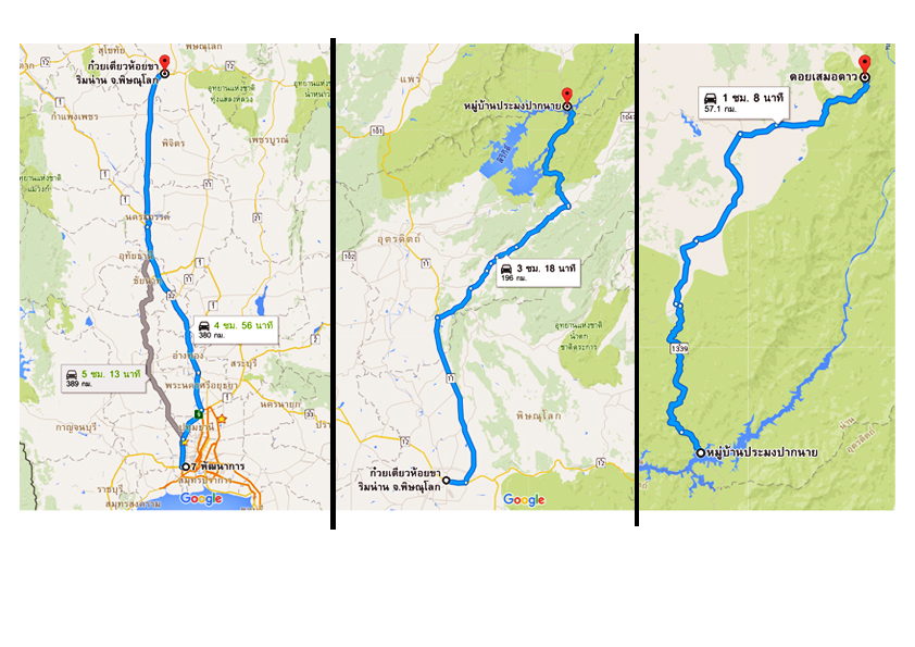 ..............เส้นทางรังสิต-นครสวรรค์-พิษณุโลก-อุตรดิตถ์-หมู่บ้านประมงปากนาย-ดอยเสมอดาว-อ.เมืองน่าน-บ่อเกลือ- ขากลับวิ่งกลับเส้นทางเดิม