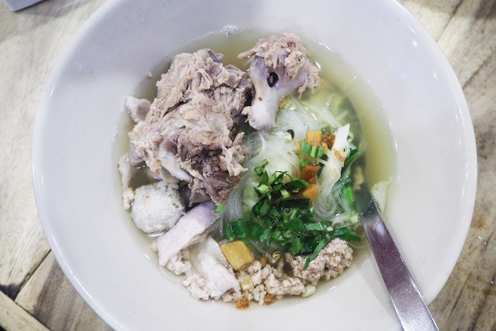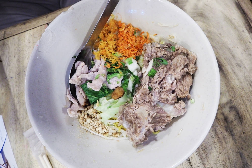 ที่เราสั่งมาคือ ก๋วยเตี๋ยวกระดูกหมูน้ำใส และ บะหมี่ชากังราวโบราณแห้ง