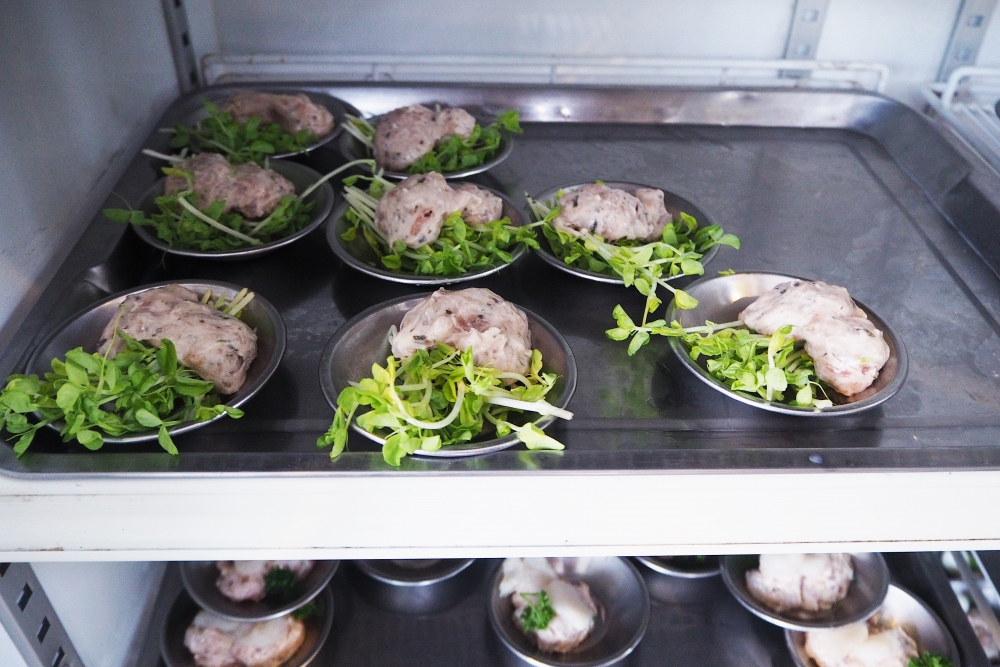 มีบริการผักฟรีด้วยนะครับ ทางร้านจัดเป็นถาดๆ ไว้อยู่ในตู้เย็น สามารถเดินไปหยิบบริการตัวเองไว้เลย