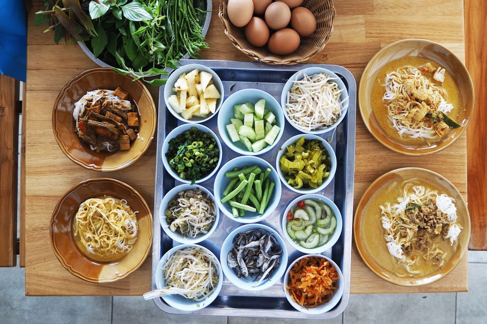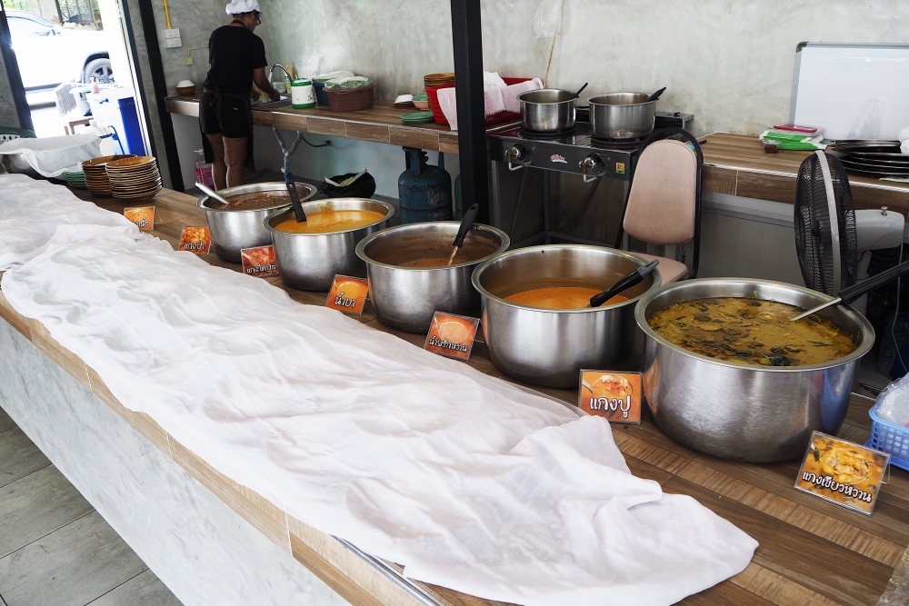 และนี่ที่เราสั่งทานครับ มีแกงไตปลา , น้ำยากะทิ , แกงเนื้อ และแกงปูครับ