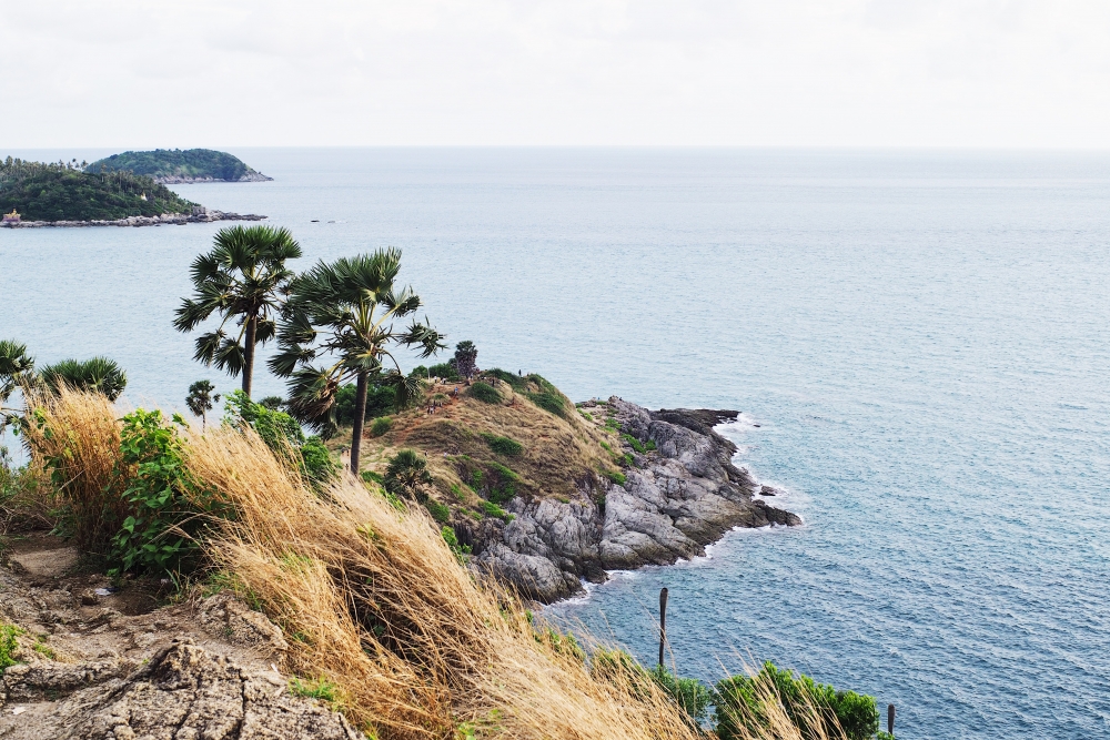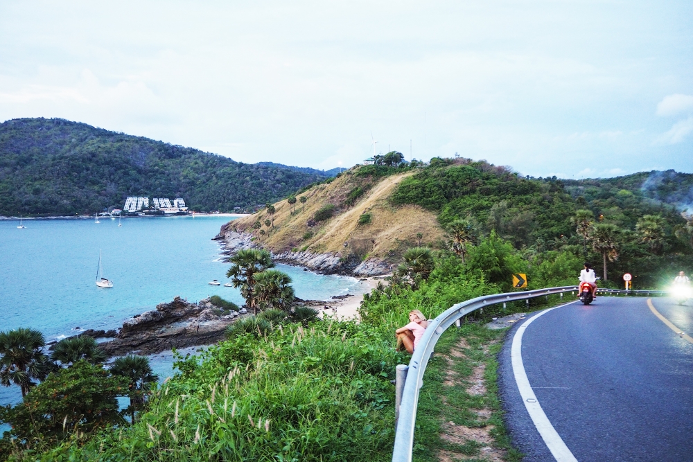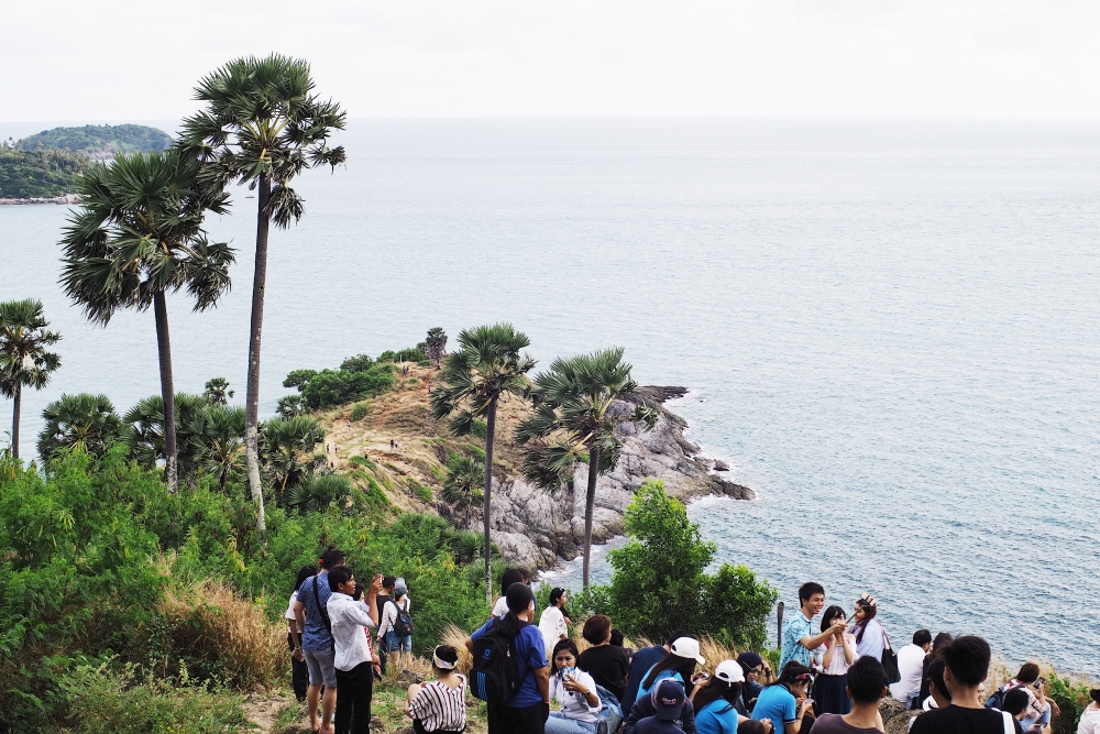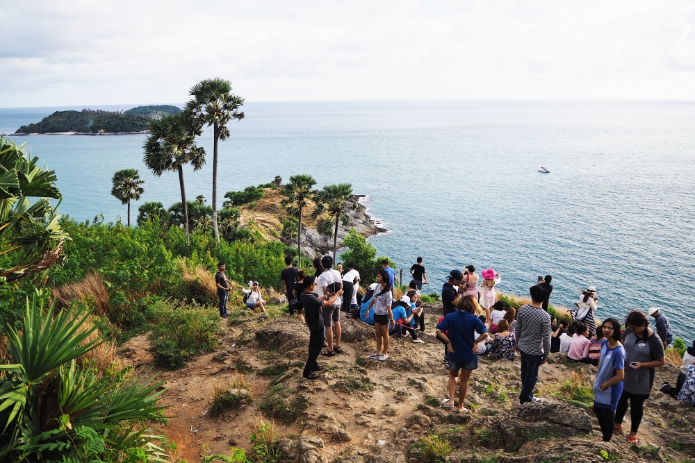 แหลมพรมเทพ จุดชมพระอาทิตย์ตกที่มีชื่อเสียงที่สุดในภูเก็ตเลยก็ว่าได้ พวกเรากลับจากหาดไม้ขาวก็ขี่รถตรงไปยังแหลมพรมเทพทันที เราไปถึงกันประมาณ 5 โมงเย็น เราไปถึงก็เจอนักท่องเที่ยวนั่งจับจองพื้นที่กันเกือบเต็มแล้ว และทยอยเข้ามาอีกเรื่อยๆ ถ้าใครจะมาแนะนำว่ามาเร็วหน่อยนะครับ