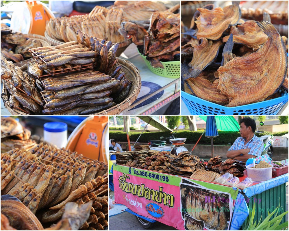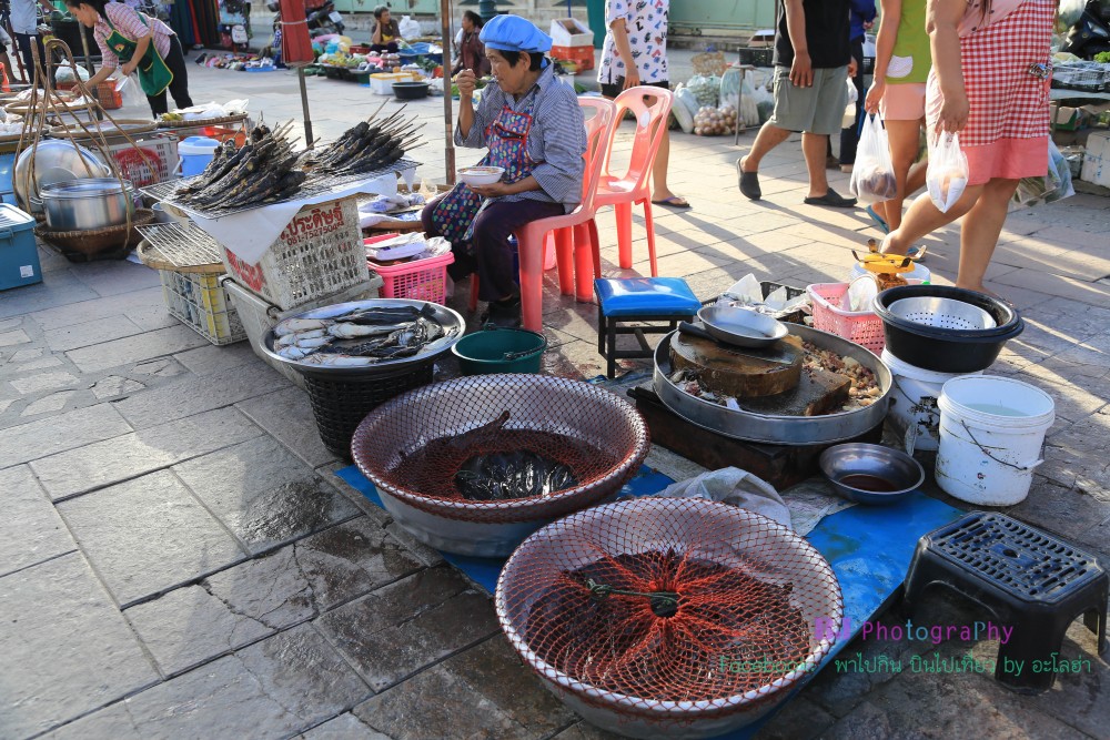 ผักพื้นบ้านก็มีให้เห็น และที่จะมีเยอะจริงๆก็พวกปลาชนิดต่างๆทั้งปลาสด ปลาแห้ง มีสารพัดชนิดเลยทีเดียว ทอดมันร้านในรูปอร่อยมากค่ะ เนื้อเหนียวนุ่ม รู้เลยว่าใส่ปลาเนื้อปลาเยอะ