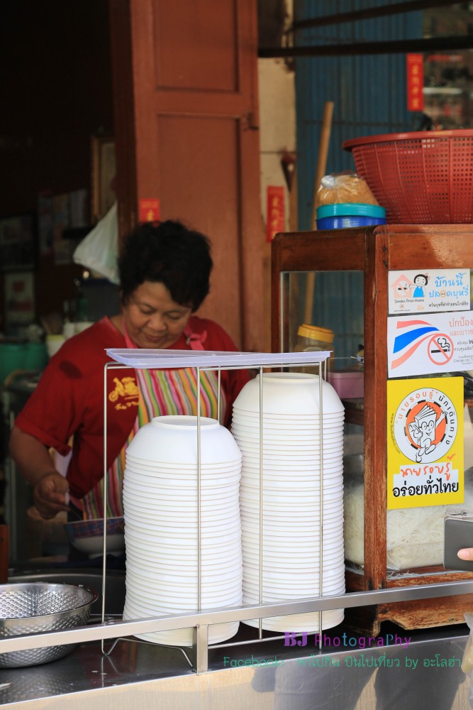 เจ๊โหนก ผู้ใจดี เรายืนกินขนมรอร้านก๋วยเตี๋ยวเปิดอยู่ฝั่งตรงข้าม เจ๊เห็นกินไม่ถนัดเลยกวักมือให้ไปเอาถ้วยพลาสติกมาใส่ขนมกินด้วยค่ะ แถมตะเกียบกะส้อมมาด้วย ใจดี๊ใจดี