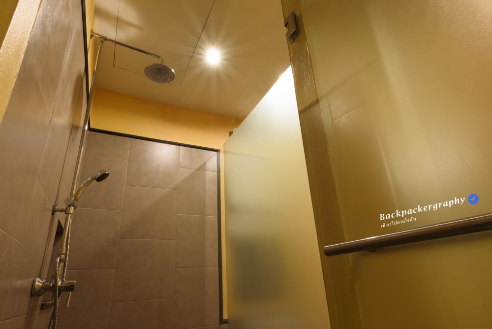 ด้านซ้ายจะเป็นห้องอาบน้ำแบบฝักบัวและห้องส้วมแยกออกจากัน และมีอ่างอาบน้ำและอ่างล้างหน้าอยุ่ด้านนอก