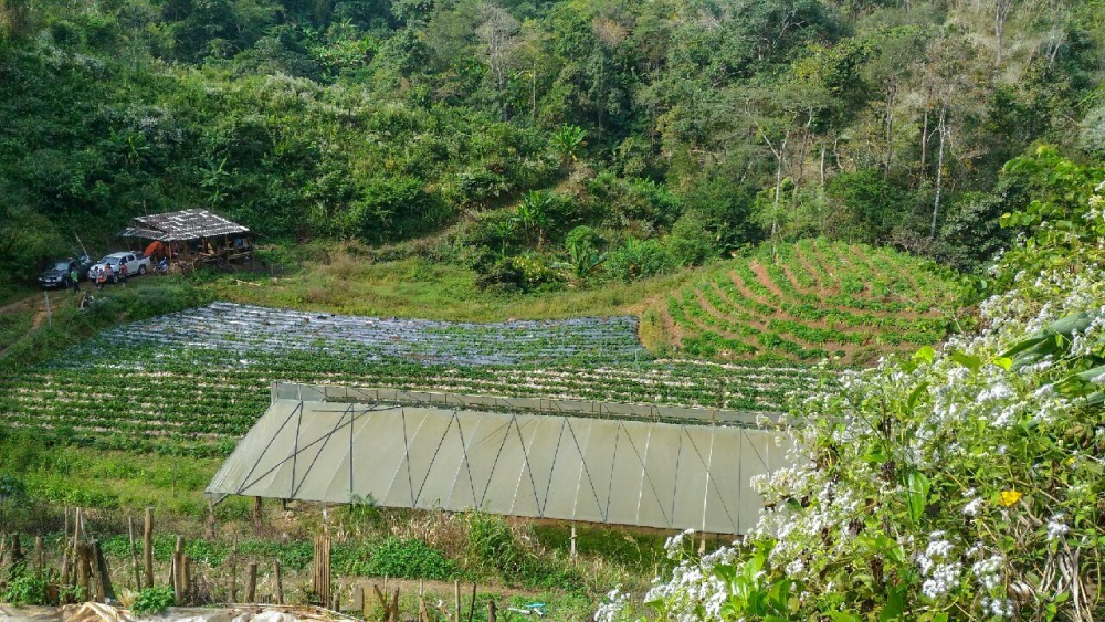 นั่งกินลมชมวิวข้างทางๆมาเรื่อยๆก็มาถึง ทางลงที่จะเข้าไปที่ไร่แล้วครับ