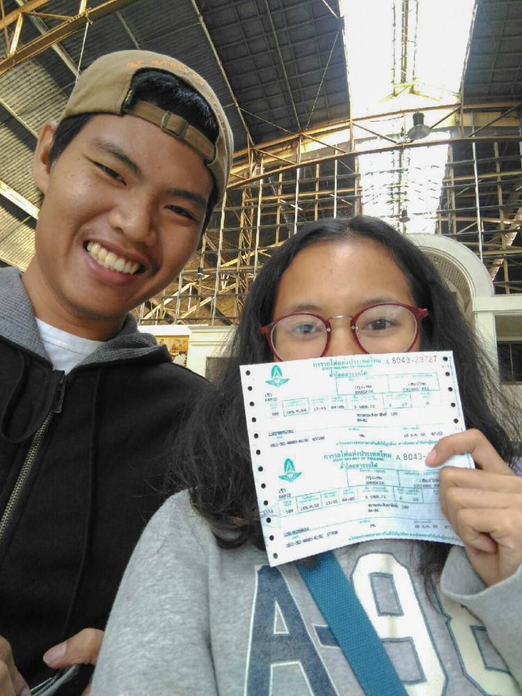 เช้าวันศุกร์ที่18 เวลาเช้ามากๆๆๆๆๆ จนที่จะมากได้ เรารีบเดินทางไปที่สถานีรถไฟหัวลำโพงด้วยความง่วง น้ำอาบไหมเอ๋ย ไม่ต้องคิดครับ รีบขนาดนั้น ไปก่อน เดี๋ยวที่นั่งเต็ม ไปถึงสถานีรถไฟอย่างเร่งรีบครับ แต่โชคดีมากๆที่เรายังไปถึงทันพอที่จะมีที่นั่ง รถไฟเที่ยวนี้เป็นรถไฟฟรีครับ นั่งกันนานๆกันเลยละครับ