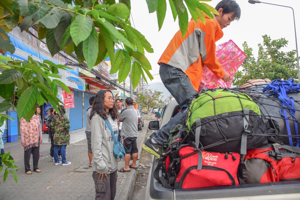 แต่สุดท้ายแล้ว ก็ตัดสินใจลงชื่อเลยครับ 2ที่ จากกรุงเทพ ด้วยทริปนี้เป็นการออกค่ายอาสาของกลุ่ม Give North ชมรมสร้างสุขเพื่อสังคม กับกิจกรรมห่มรักมัดย้อม 10ปีสร้าง 10ปีสุข ซึ่งเป็นกลุ่มจิตอาสาอยู่ที่จังหวัดเชียงใหม่ และสถานที่ๆเราจะไปนั้นอยู่ที่ บ้านห้วยแม่เย็น อำเภอแม่วาง จังหวัดเชียงใหม่ ครับ เราตื่นเต้นนิดๆเพราะเราเพิ่งเคยร่วมกิจกรรม เริ่มรู้สึกจะทำตัวไม่ถูก แต่ไหนๆก็ไหนๆละ ลงชื่อมาแล้วเลือกแล้วก็ถอนไม่ได้เนอะ (; กิจกรรมที่เราจะเดินทางไปต่อจากนี้เป็นกิจกรรมการทำผ้าห่มด้วยวิธีการมัดย้อม ซึ่งจะนำวัตถุดิบขึ้นไปบนพื้นที่ของชาวบ้าน และทำขั้นตอนการมัดย้อมและจัดทำจนแล้วเสร็จ แล้วจึงส่งมอบ ใช้เวลาร่วมกิจกรรมทั้งหมด 3 วัน แต่ผมและแฟน ต้องรวมเวลาในการเดินทางเป็น 5 วัน ลางานครับพี่ท่าน ยอมครับงานนี้ หลังจากลางานทุกอย่างลงตัว ประสานงานกับพี่ทางกลุ่มแล้ว ก็ได้เวลาจัดกระเป๋าครับ