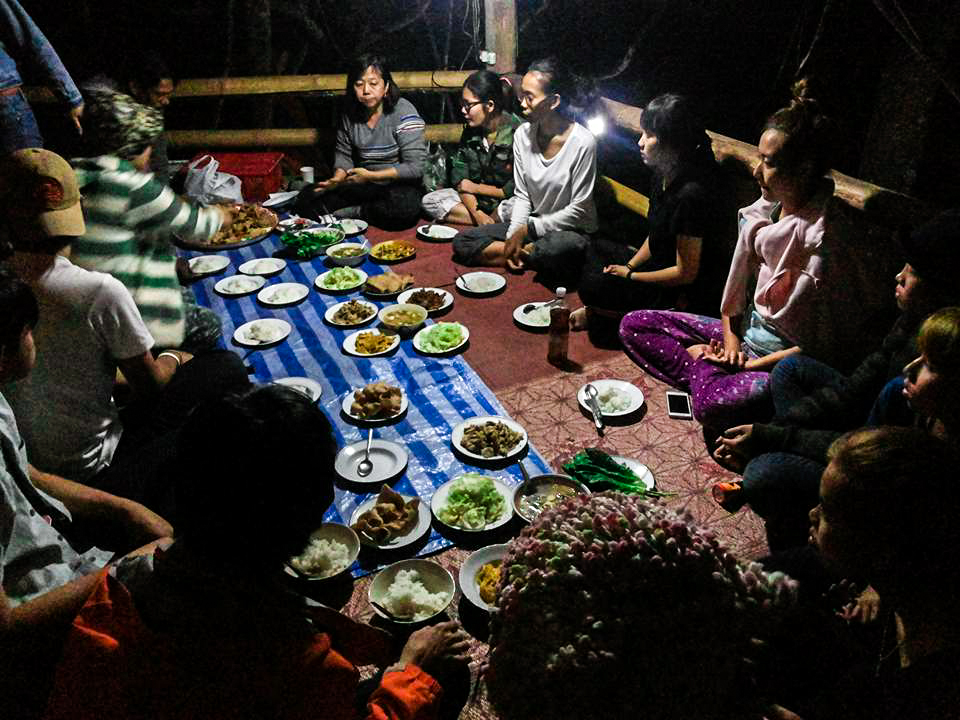 มื้อนี้คืนแรกครับ กับข้าวอร่อยมากกก จากแม่ครัวหนึ่งในสมาชิกกลุ่มGive north ตอนนี้ยังไม่เปิดเผยตัวนะครับ อิอิ ก่อนรับประทานอาหารก็ต้องพิจารณาอาหารกันสักก่อนนะครับ หลังจากรับประทานอาหารเสร็จแล้ว เราก็มานั่งรอบกองไฟครับ ถือเป็นการแนะนำตัวกันอย่างเป็นทางการ การเข้ารอบกองไฟอาจจะไม่มีรูปนะครับ มันกลายเป็นความทรงจำที่เข้ามาซึมซับไว้ในความทรงจำที่ดี ทุกคนได้รู้ว่าแต่ละคนเป็นอะไร ทำอะไร มาจากไหน มาเข้าร่วมกลุ่มได้ยังไง ทำไมถึงมาเข้าร่วมกลุ่ม คืนนั้นเราแลกเปลี่ยนทัศนคติความคิดกันทุกคน ผมนี่ยิ้มเลยครับ เพราะรู้สึกดีมากๆ