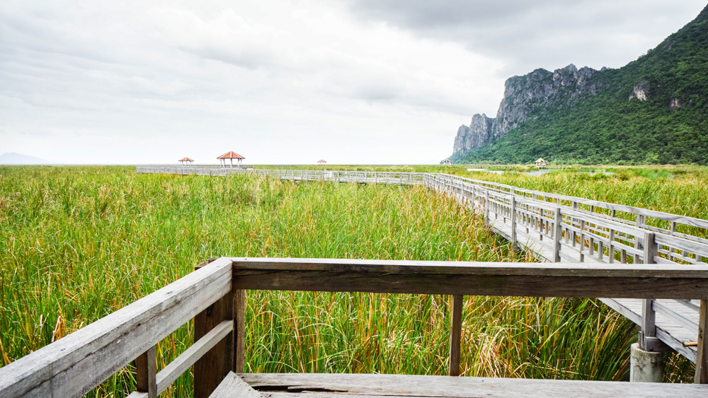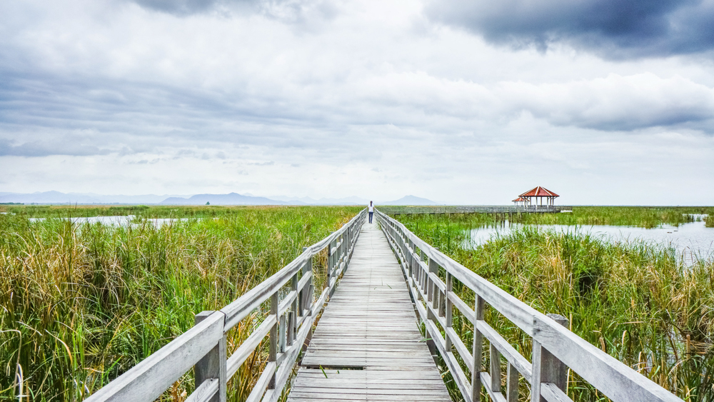 แต่ถ้าจะมาเที่ยวชมวิวแบบแปลกตาถ่ายภาพวิวสวยๆก็มาค่ะมาเดินเล่นบนสะพานไม้ที่ทอดยาวผ่านบึงนี้ได้