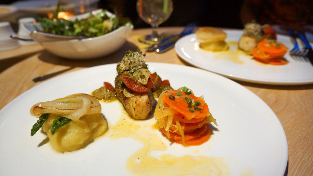 จานต่อมาเป็นสลัดส่วนเมนคอร์สชื่อเมนูอะไรไม่แน่ใจแต่เป็นปลาหิมะอร่อยมาก