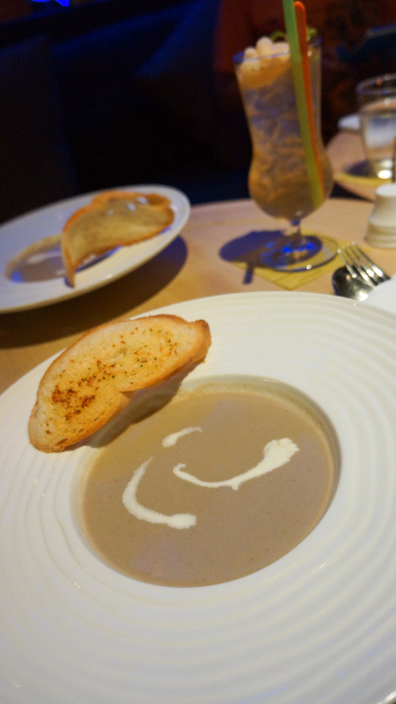 ถ่ายรูปจนเพลินอาหารจานแรกก็มาเป็นซุปเห็ดของสารภาพว่าเราไม่ชอบซุปเห็ดเอาซะเลย