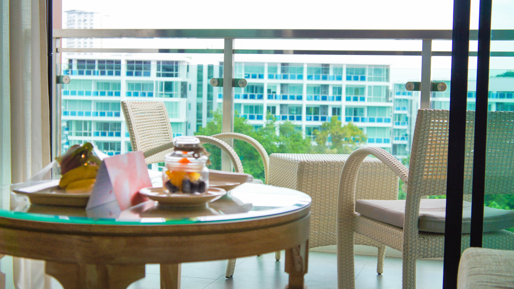 ตึกที่เราพักระเบียงห้องจะไม่ได้หันไปทางทะเลนะคะเลยดูแต่วิวคอนโดข้างไปก่อนแล้วกัน