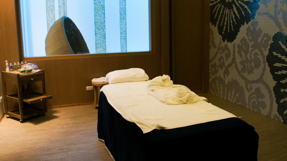ภายในห้องทำสปาตกแต่งอย่างเรียบง่ายแต่ทีเด็กคือเตียงของที่นี่เป็นเตียงขนแกะและสามารถปรับอุณหภูมิได้ด้วย