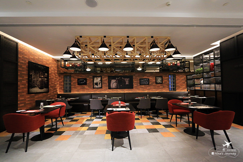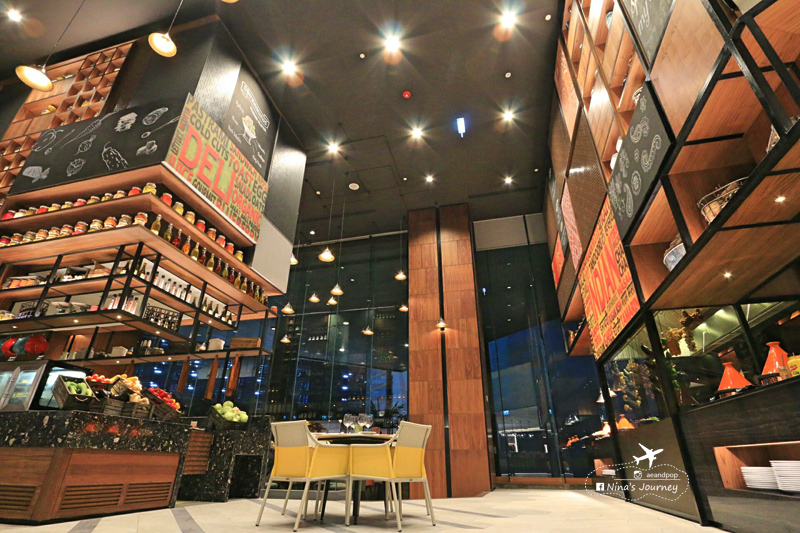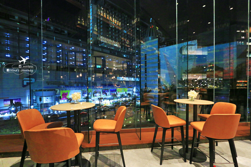 พื้นที่ตรงกลางห้องอาหารจะเป็นโถงโล่ง มองลงไปเห็น lobby ชั้นล่างได้ และด้วยห้องอาหารที่เน้นเพดานสูงโปร่งเลยทำให้ไม่รู้สึกอึดอัด การตกแต่งของผนัง-กำแพงที่สูงชะลูด การเล่นแสงไฟก็ดี ตรงจุดนี้เราชอบเป็นการส่วนตัวเพราะให้ความรู้สึกถึงความแกรนด์ (ไม่รู้จะอธิบายคำพูดอย่างไรดี)