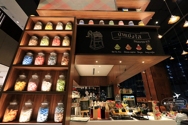 สำหรับมุมของหวานนี้ จุดเด่นขอยกให้กับ”น้ำแข็งใส”ค่ะ เพราะมีน้ำเชื่อมให้ใส่หลากรสมาก รวมถึงเครื่องต่างๆสารพัดอย่าง ไม่ต่ำกว่า 40 ชนิด อาทืเช่น ลอดช่อง ทับทิมกรอบ วุ้นมะพร้าว มันเชื่อม ลูกตาล ฝอยทอง ลำใย แปะก๊วย เผือก ซาหริ่ม พุทราเชื่อม เฉาก๊วย เม็ดแมงลัก ฯลฯ ... และได้ยินมาว่าถ้าเป็น Sunday brunch จัดหนักยิ่งกว่านี้อีกค่ะ มีเครื่องเยอะมากกว่า
