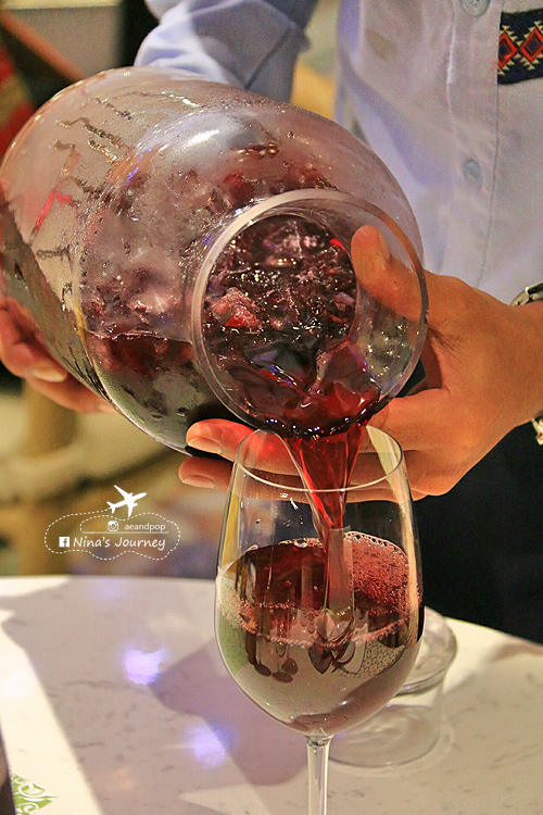อ่านส่วนผสมดูไม่มีไวน์แดงนะคะ ซึ่งจุดนี้ต่างกับ sangria ... แต่โหลนี้เด่นด้วยกลีบดอกกุหลาบที่นำมาโรยด้านบน ต้องเขย่าขวดโหลก่อนรินใส่แก้ว เท่าที่ลองเทดู รินได้ไม่ต่ำกว่า 8 แก้ว เฉลี่ยแก้วละ 50++บาท เราว่าคุ้มค่ามากทีเดียวค่ะ สำหรับคนที่อยากดื่มกับเพื่อนกลุ่มใหญ่แล้วแบ่งปันกัน