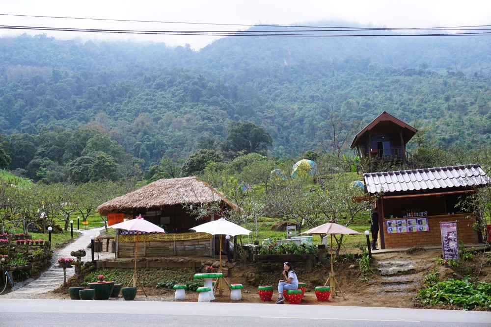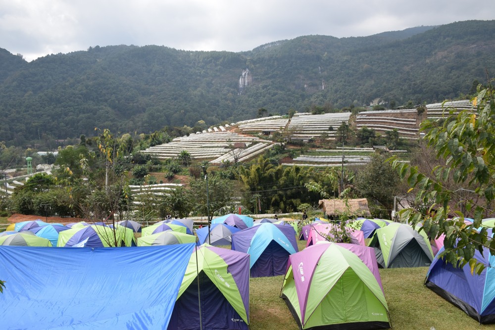 มาถึงเชียงใหม่เราก็รีบจัดการเรื่องรถแล้วก็ออกเดินทางมุ่งหน้าไปดอยชัวร์ญ่า หาที่พักก่อนค่ะ เราไปถึงกันช่วงบ่ายกว่า ถึงช้าเพราะแวะทางข้าวซื้อของแล้วก็ไหว้พระที่วัดพระธาตุจอมทองด้วยค่ะ กว่าจะมาถึงที่พักกางเต็นท์ก็เกือบเต็มแล้ว