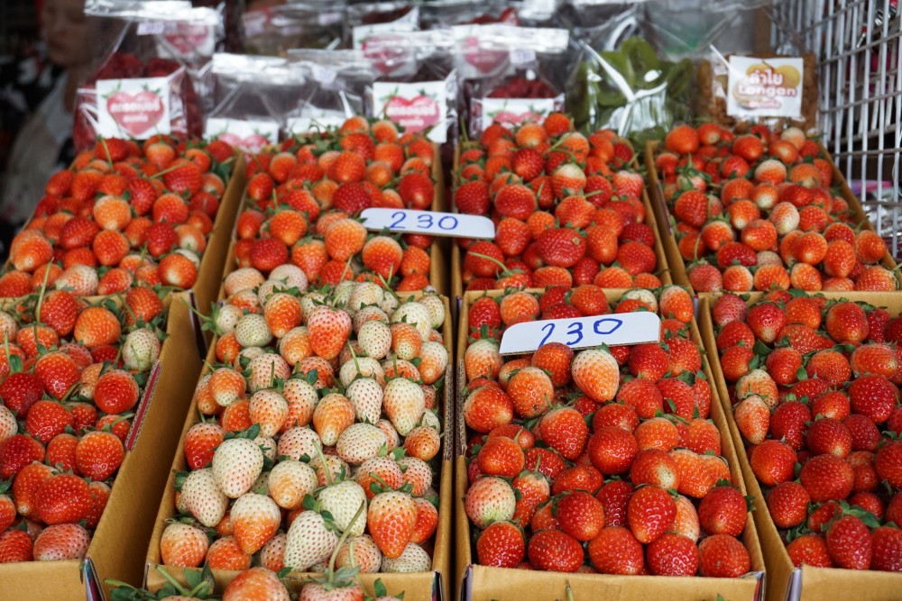 กางเต้นเรียบร้อย ก็ออกเที่ยวได้ เราตั้งใจไปจุดสูงสุดที่ดอยอินทนนท์ ระหว่างทางก็แวะตลาดของฝากก่อน น่ากินทั้งนั้น