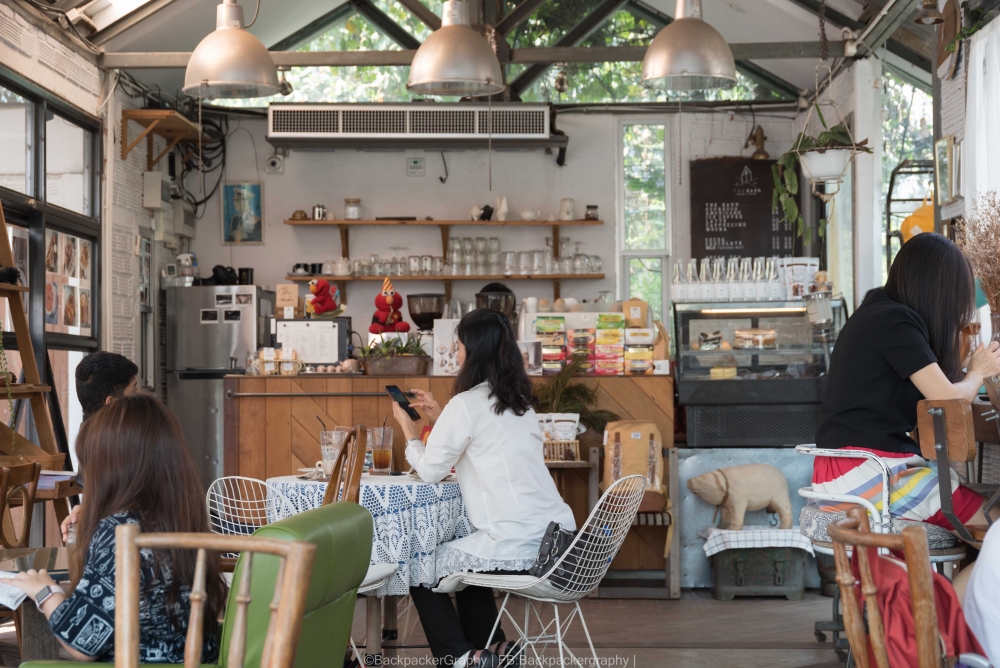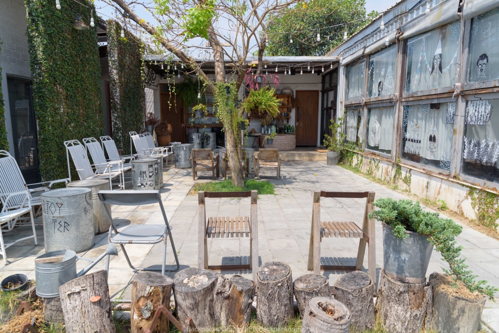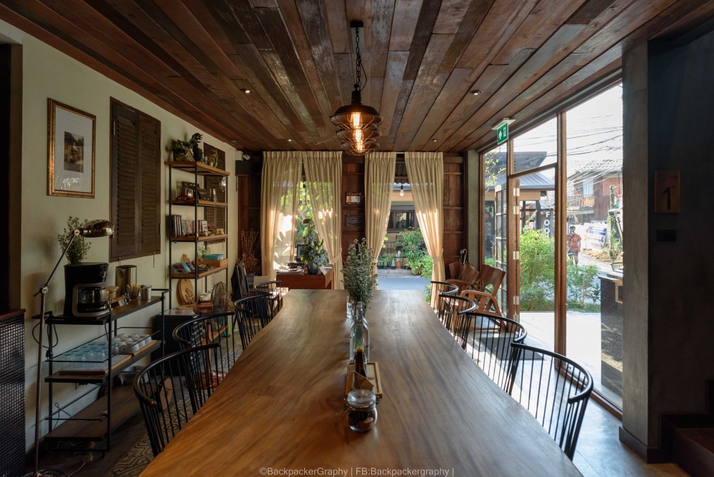 ตอนเย็นวางแผนไว้ว่าจะมาถ่ายพระอาทิตย์ตกที่วัดสวนดอก โชคดีที่ใกล้กับวัดมีร้านกาแฟติดแอร์ให้นั่งรอ ที่นี้ขายเครื่องดื่มและเค้กเป็นหลัก ไม่มีอาหารมือหลักให้สั่งมาทาน เหมาะกับการมานั่งอ่านหนังสือและทำงาน โดยหลังร้านก็มีมุมเก๋ๆที่ถูกตกแต่งไว้อย่างสวยงาม ให้ออกไปถ่ายรูปเล่นหรือจะเอาเครื่องดื่มิิกไปนั่งหลังร้านก็ได้