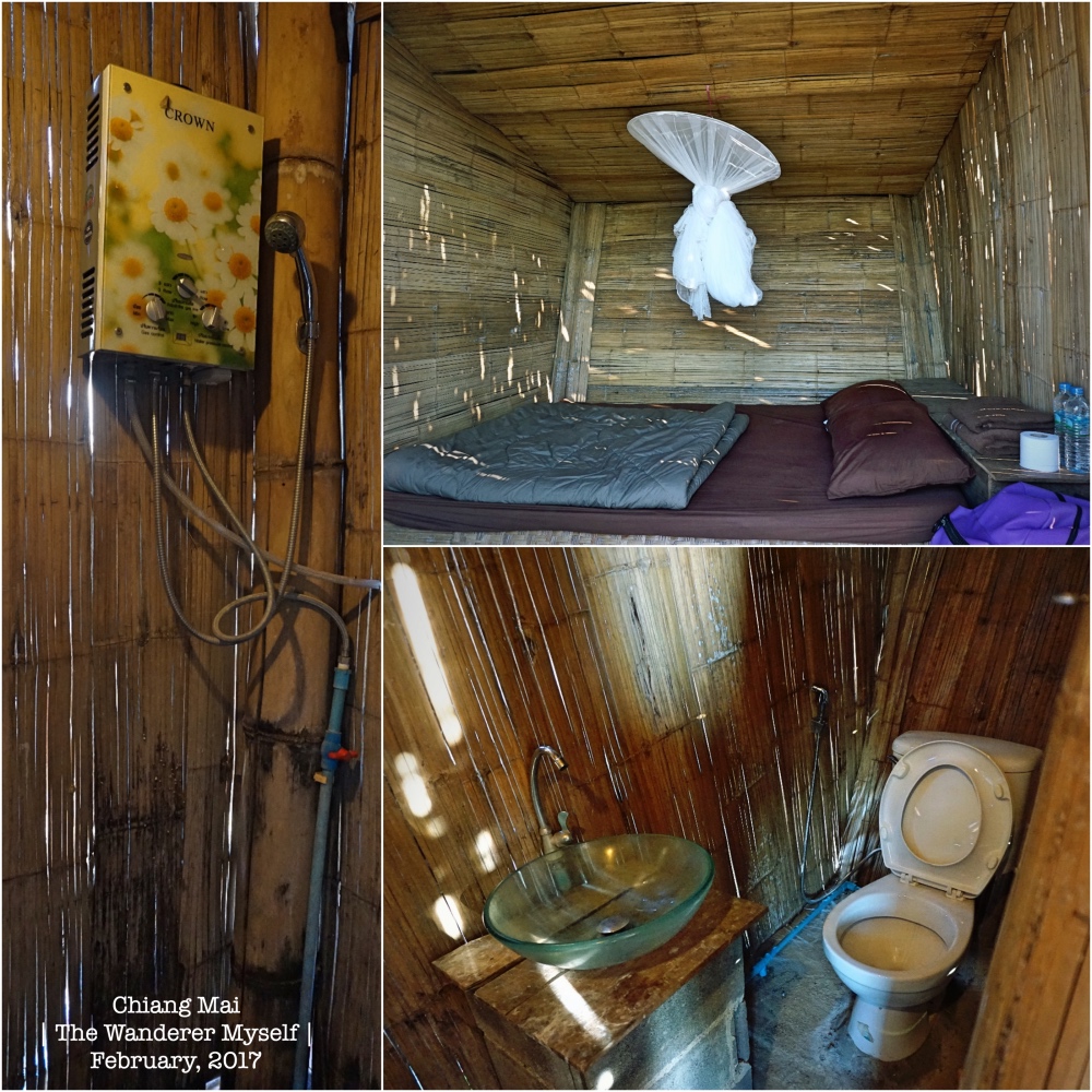> เราพักแบบบ้านเดี่ยว คือมีห้องน้ำในตัว, กระท่อมจะไม่มีห้องน้ำในตัว จะต้องเดินออกมาใช้ห้องน้ำรวม, ส่วนบ้านปูน จะเปิดให้พักเฉพาะชั้นบน ชั้นล่างจะเป็นที่พักของเจ้าของโฮมสเตย์