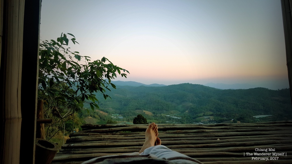 > เราอยู่เล่นกันที่นี่สักพักใหญ่ พอได้เวลาเย็นย่ำ เราก็เดินทางต่อมุ่งตรงไปยังที่พักของเรากันคืนนี้คือที่ "ม่อนเหนือโฮมสเตย์" อ.แม่ริม  > เมื่อมาถึงก็ต้อง ว้าวววว กับภาพที่ปรากฏอยู่ตรงหน้า  ฉันชอบทัศนียภาพแบบนี้ซะจริงๆ ภาพที่ไม่มีขอบเขตจำกัด ภาพที่กว้างไกลสุดขอบฟ้า