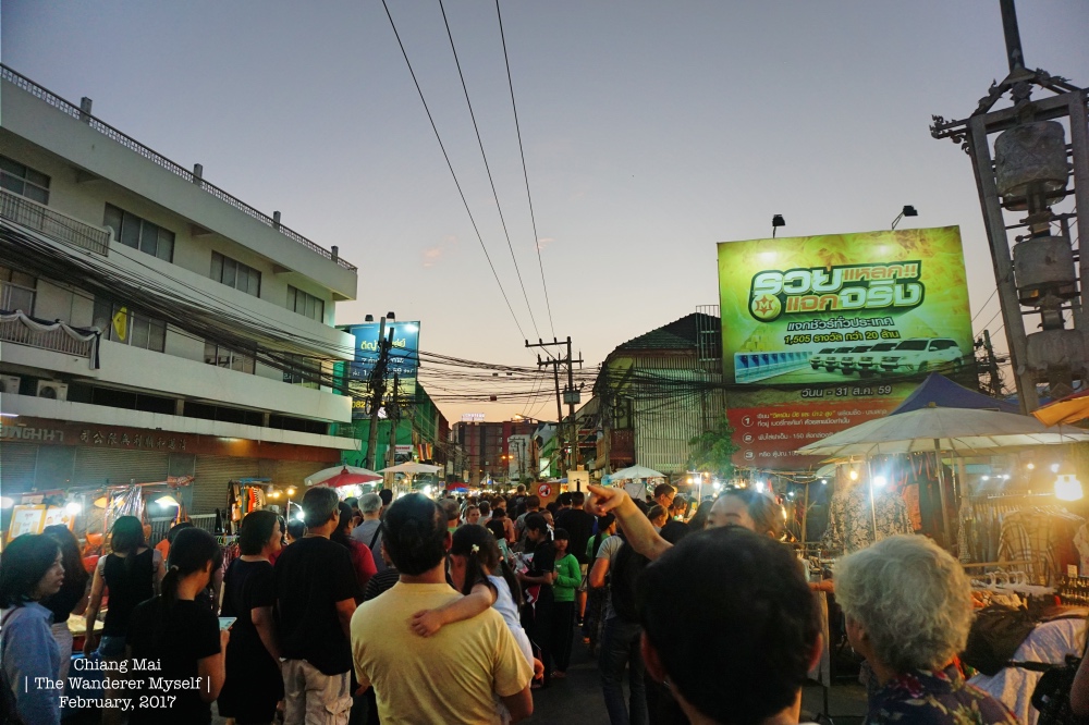 > เต็มอิ่มกันแล้วกับมื้อเย็น ก็ต้องไปเดินย่อยกันหน่อยที่ "ถนนคนเดินวัวลาย"  พร้อมทั้งนัดแนะเวลากับพี่คนขับให้มารับกลับโรงแรม  > โดยเราเข้าพักที่โรงแรม "M Hotel" ใกล้ประตูท่าแพ  (ถ้าเป็นคืนวันอาทิตย์ จะมีถนนคนเดินท่าแพ ซึ่งจะอยู่ซอยติดกับโรงแรมเลย)